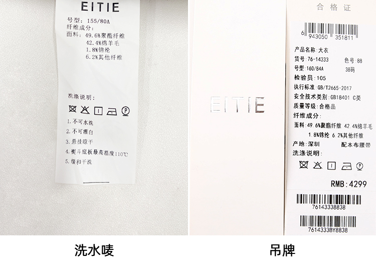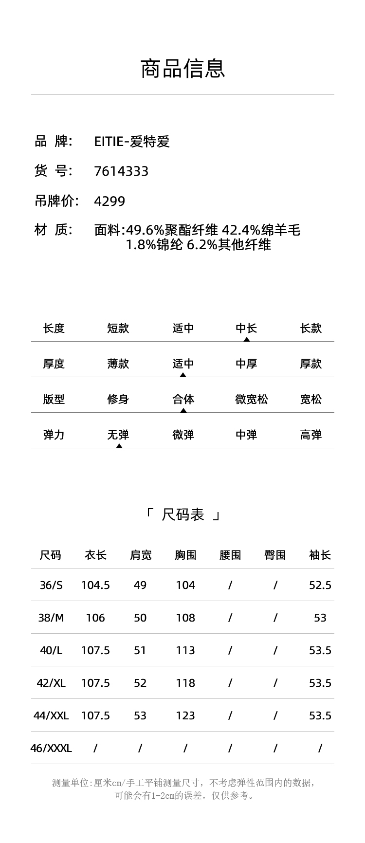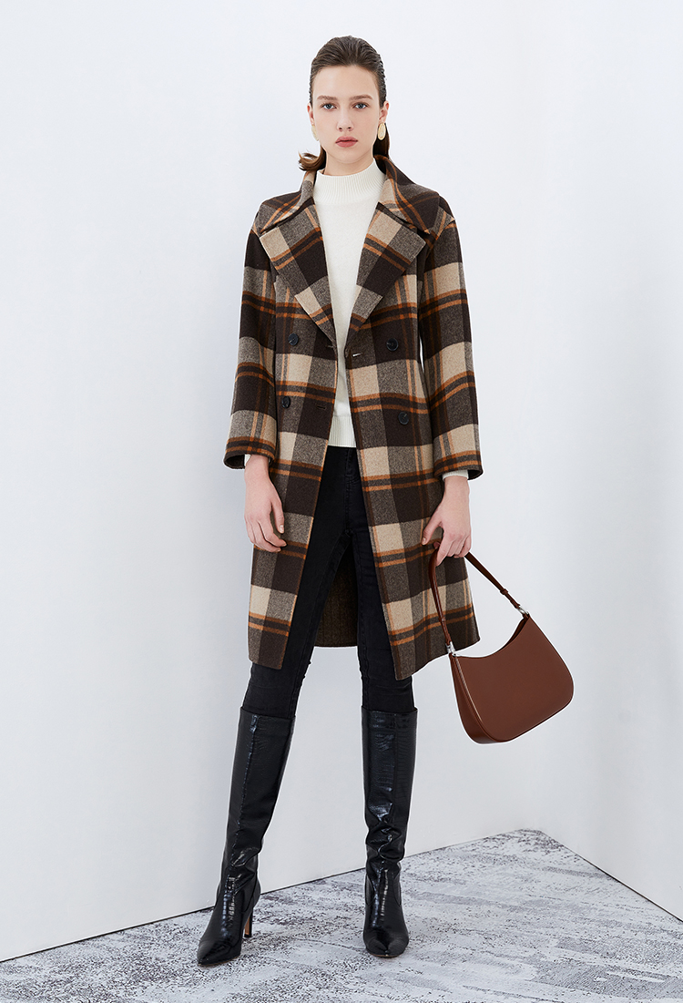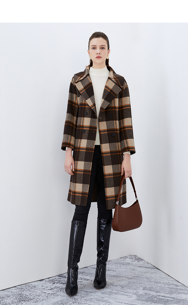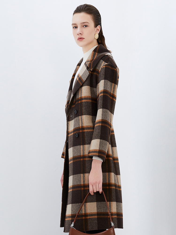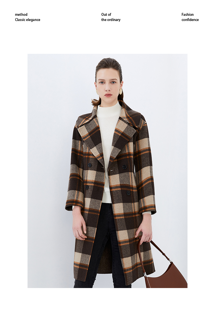 EITIE爱特爱冬季新款时尚复古格纹翻领百搭修身毛呢大衣外套7614333
