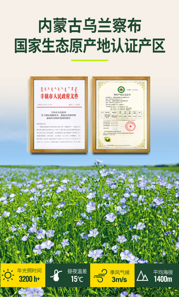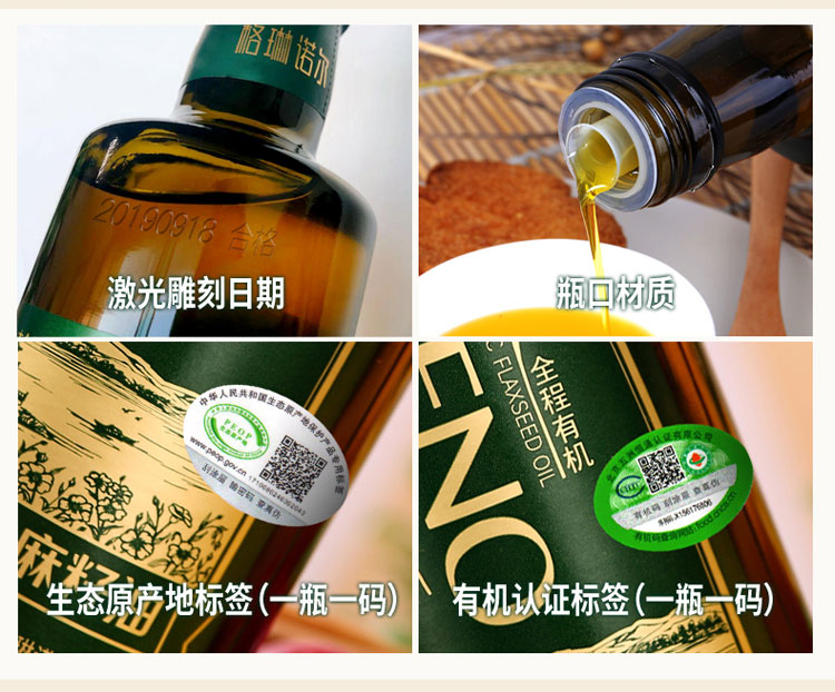 东升农场 格琳诺尔有机冷榨亚麻籽油500ml