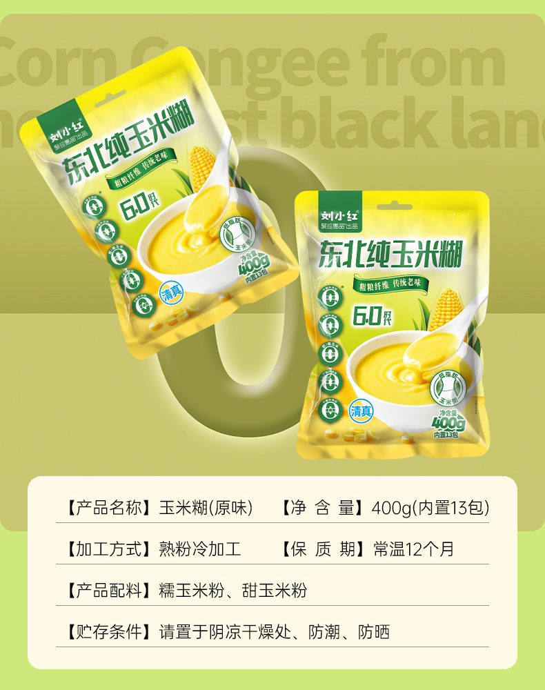 【暖心暖胃0添加】东北0添加冲饮即食纯玉米糊400g/袋组合装(内含13小包)JL