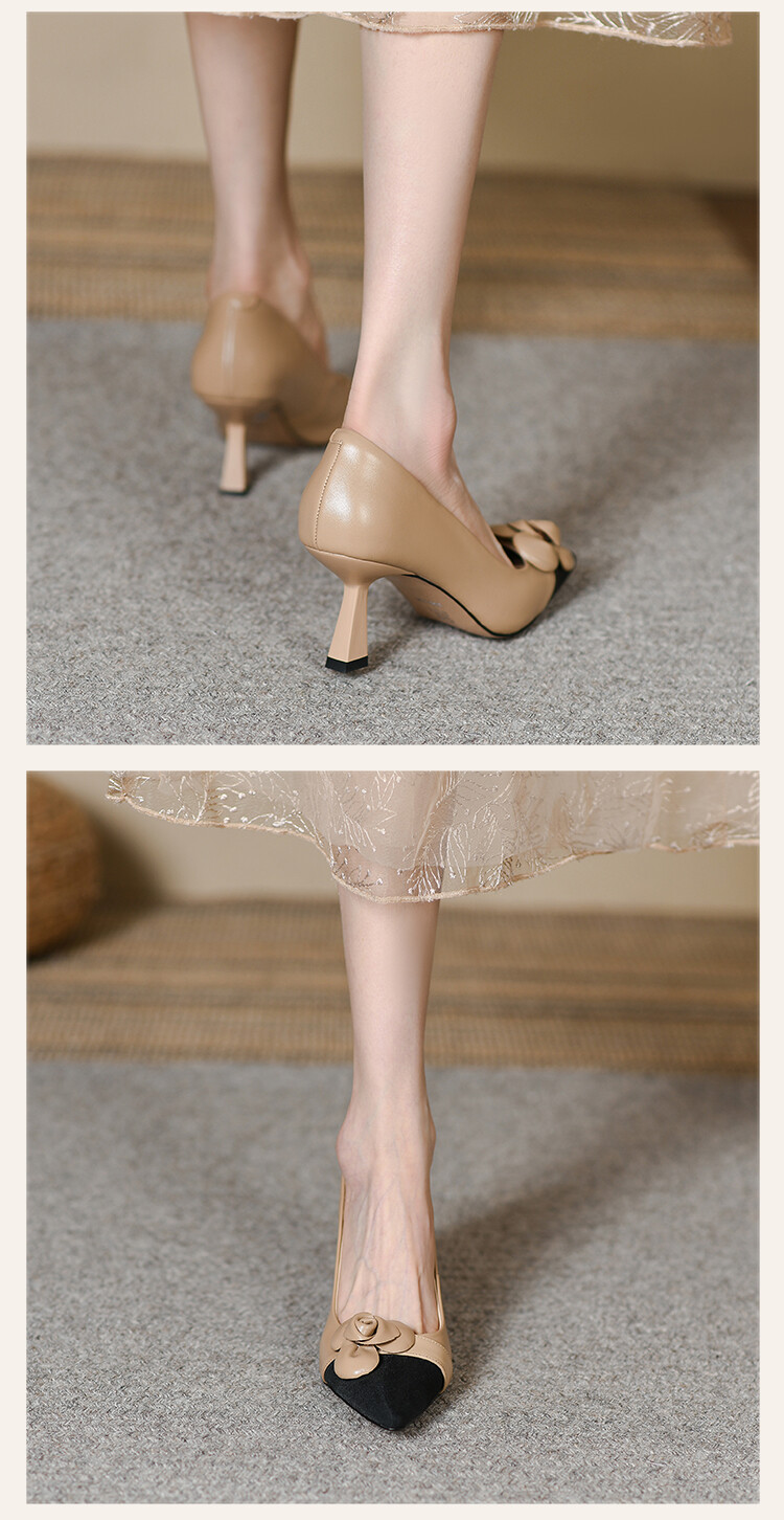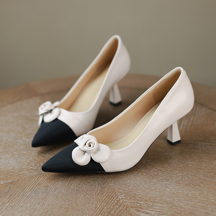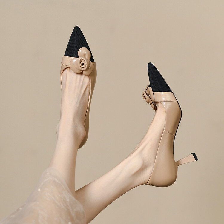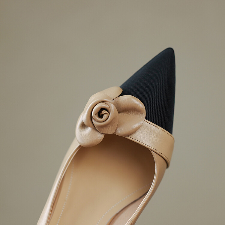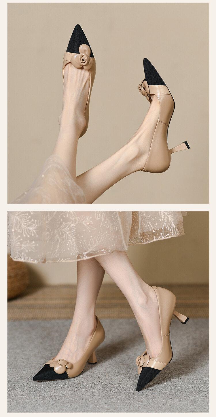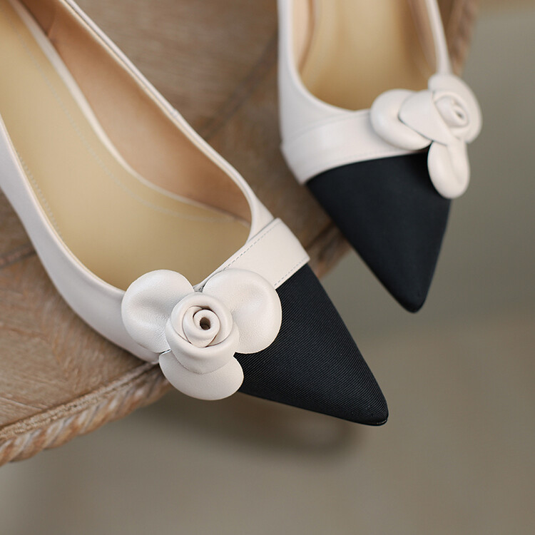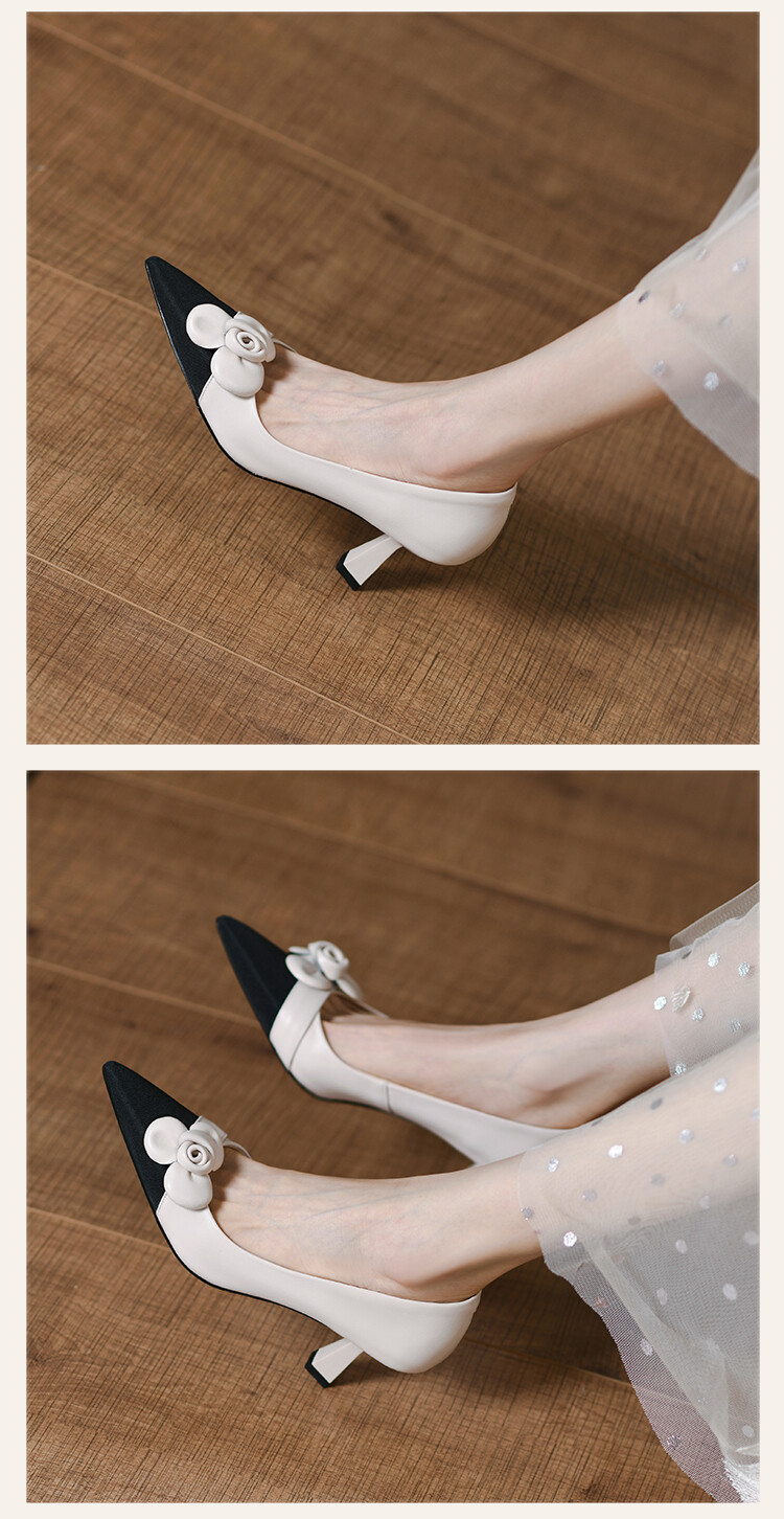 【预售5天】法式仙女风花朵单鞋女尖头浅口拼色细跟气质时尚高跟鞋MLJ&A615