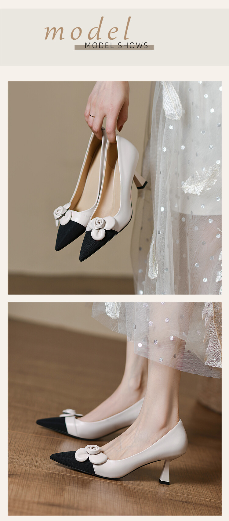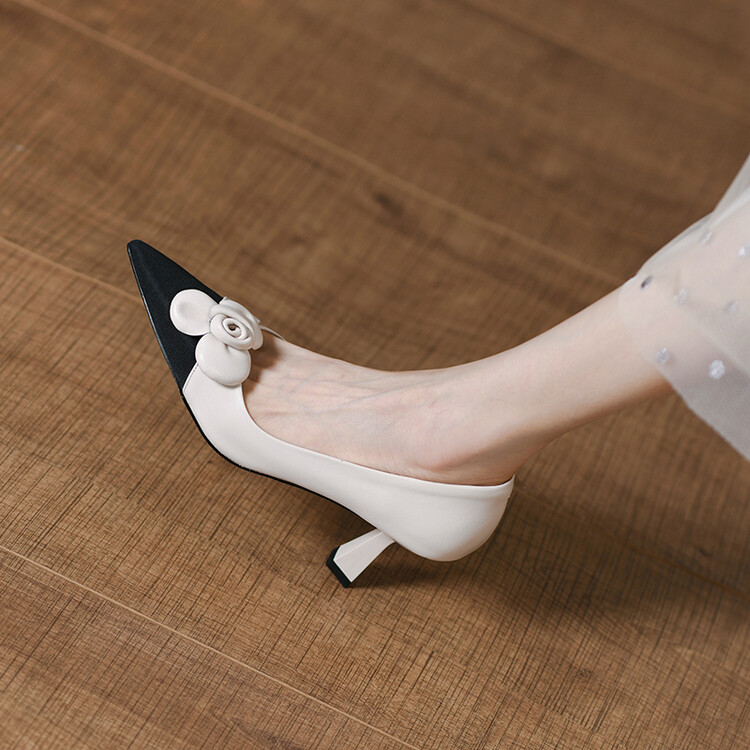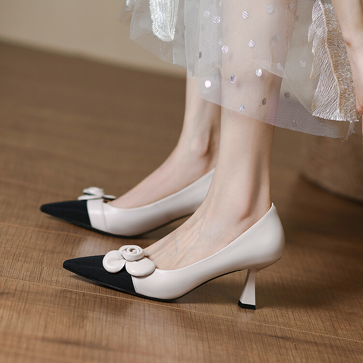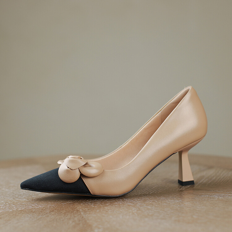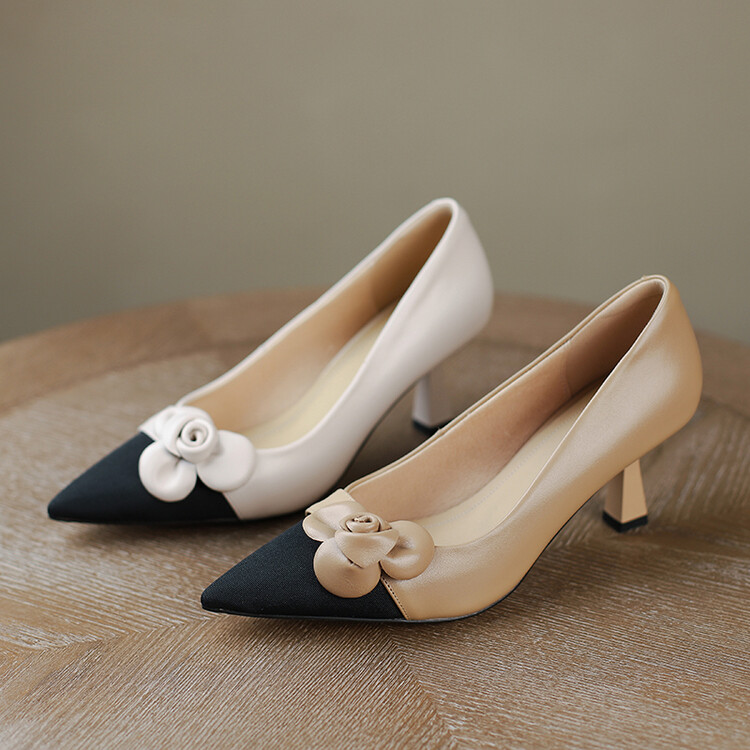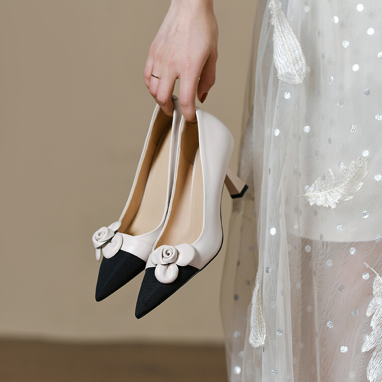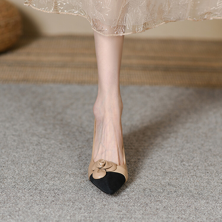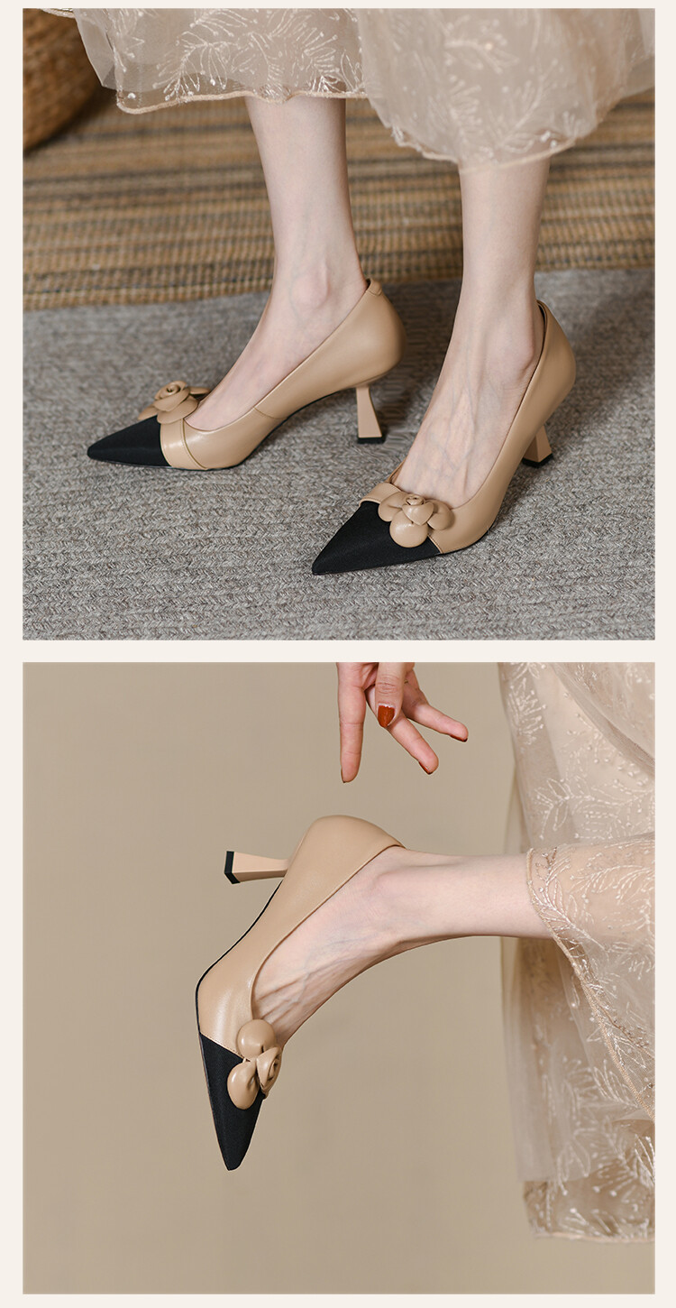 【预售5天】法式仙女风花朵单鞋女尖头浅口拼色细跟气质时尚高跟鞋MLJ&A615