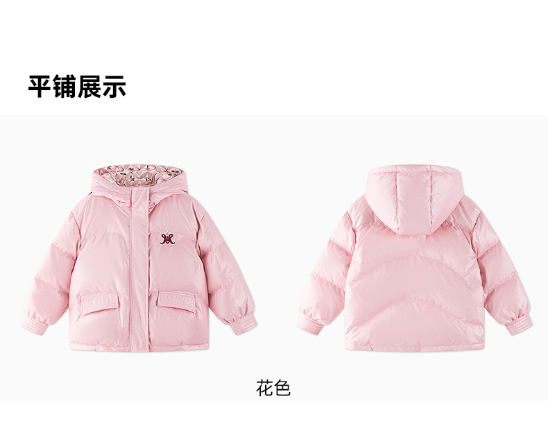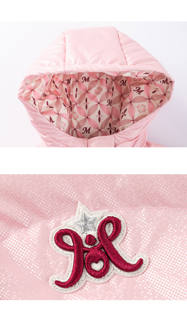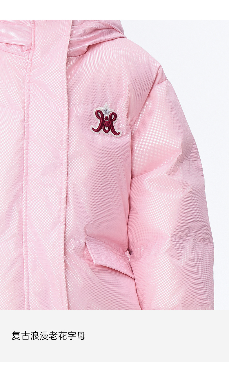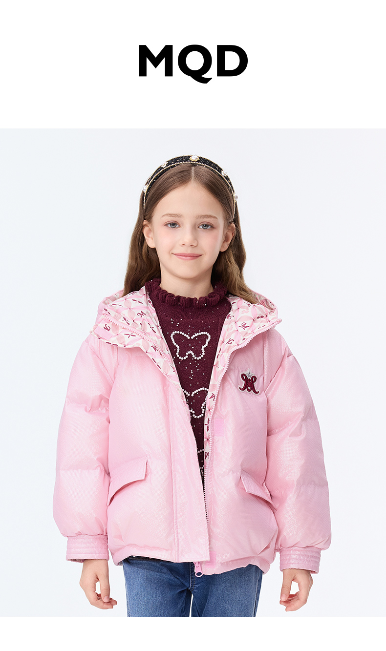 【秒1】【MQD】女童复古老花字母俏皮柔美连帽羽绒服