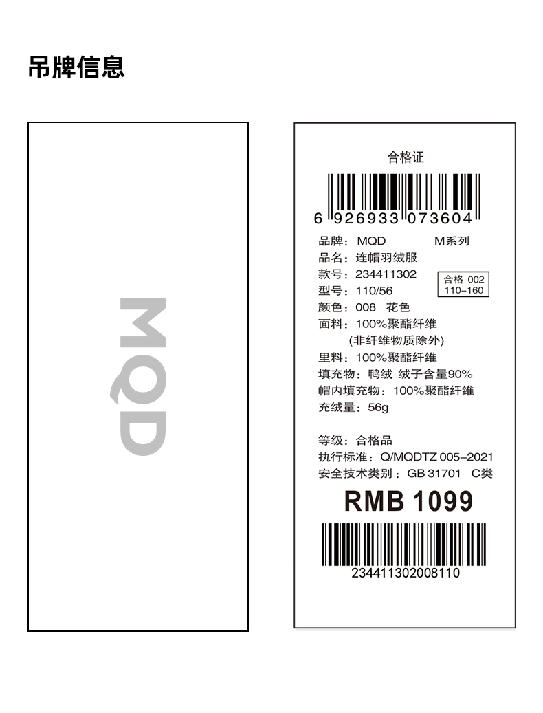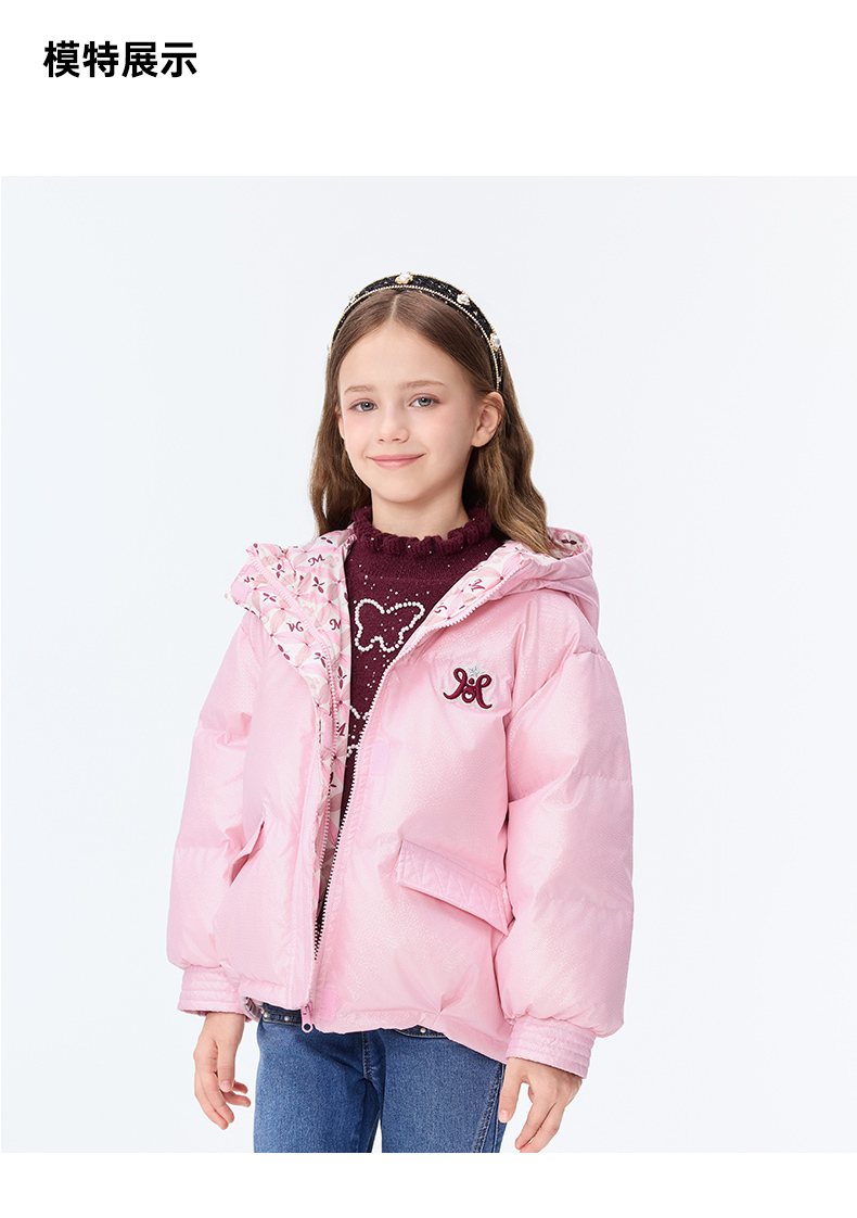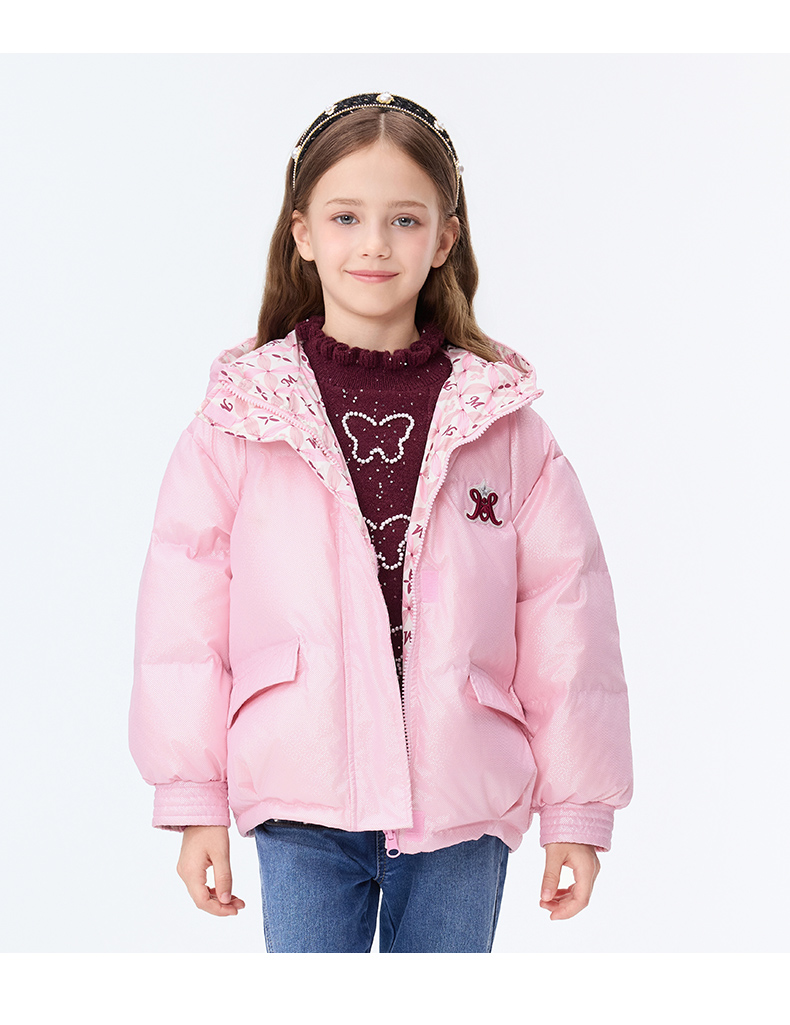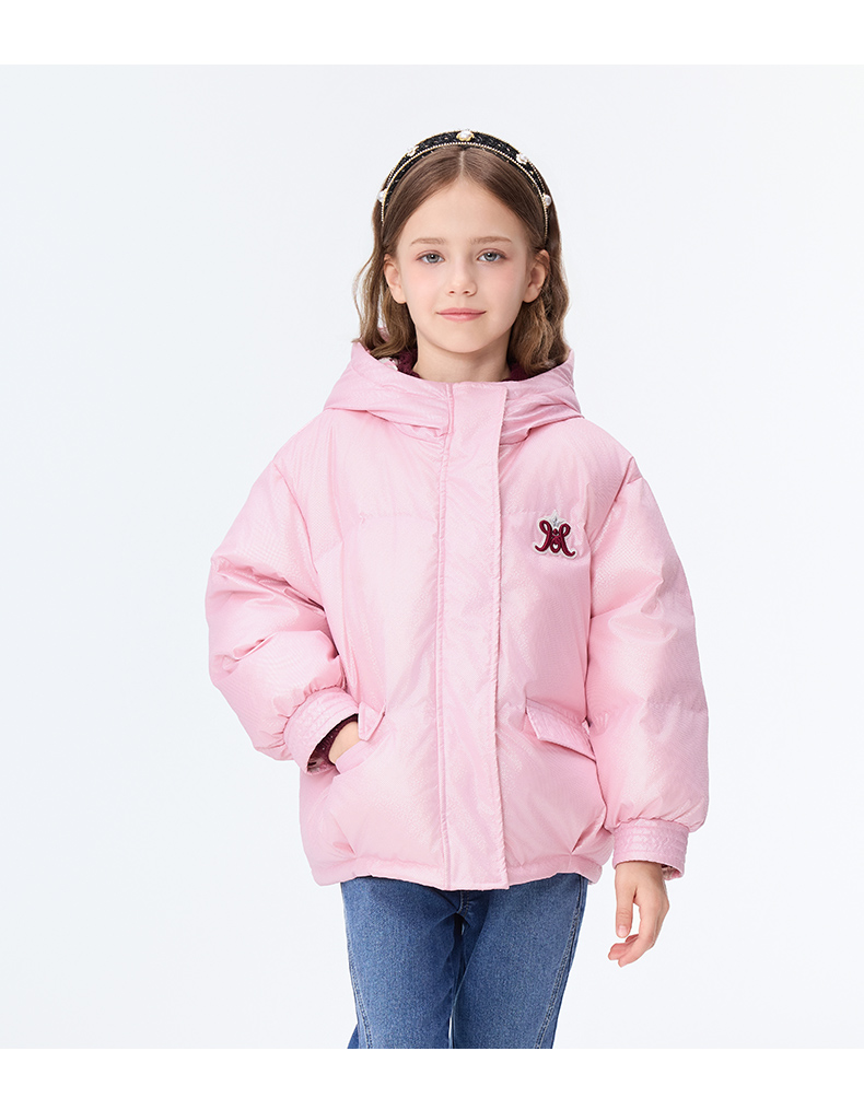 【秒1】【MQD】女童复古老花字母俏皮柔美连帽羽绒服
