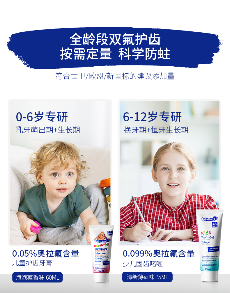 德国babyheart进口牙膏0-12岁奥拉氟防蛀儿童牙膏
