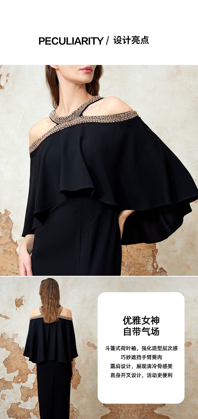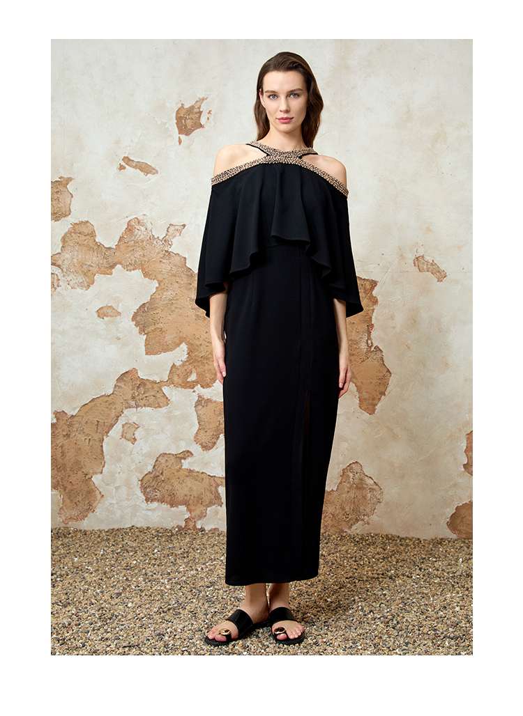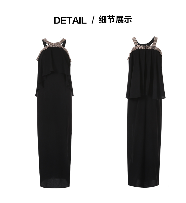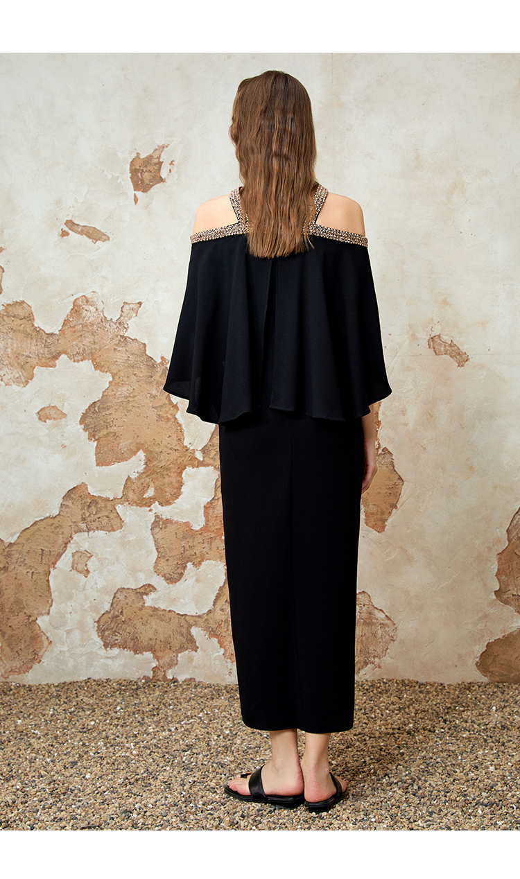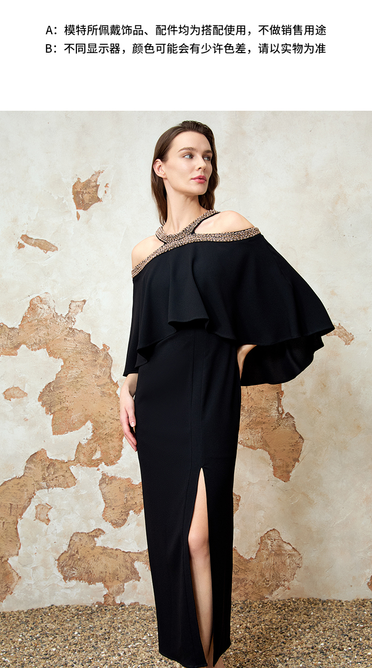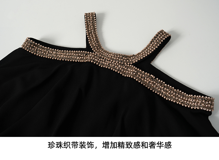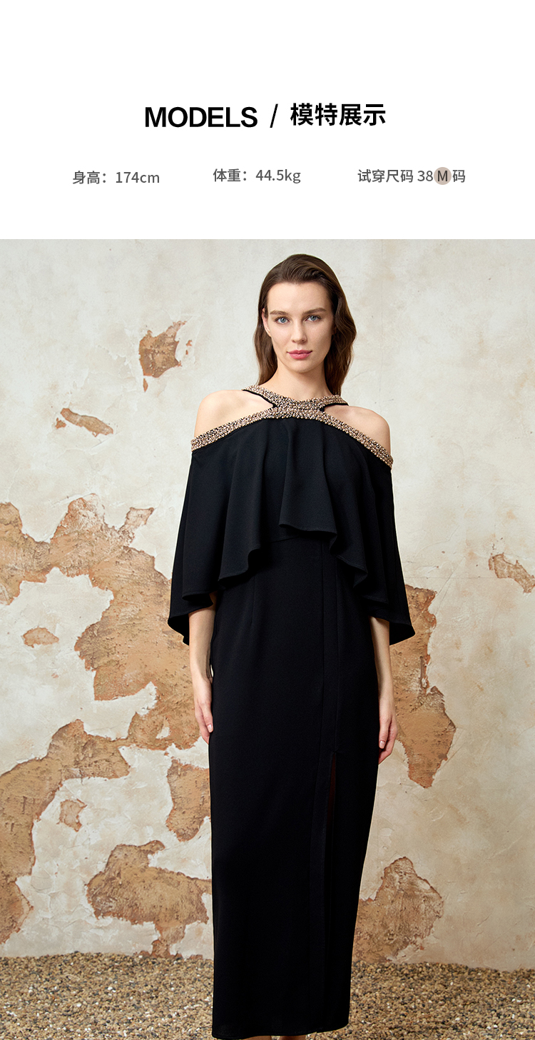EITIE爱特爱夏季新款优雅法式精致露肩黑色礼服连衣裙8277901
