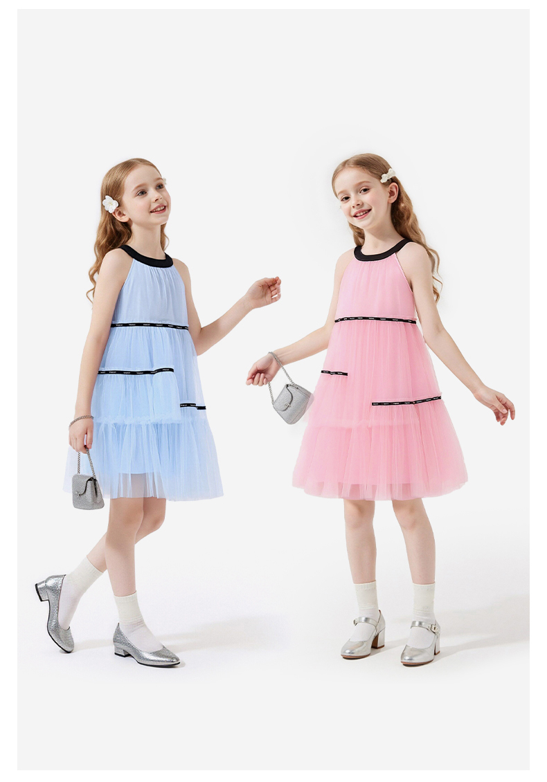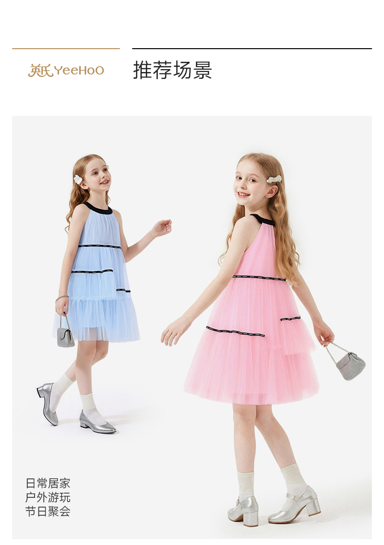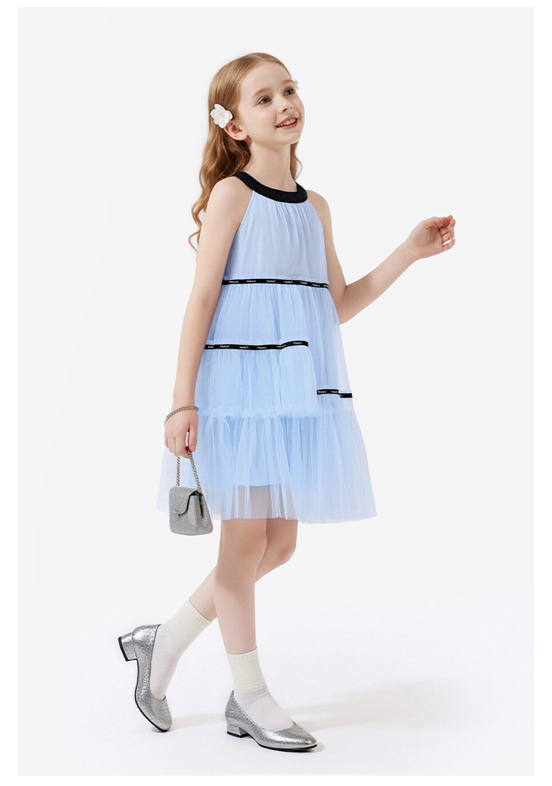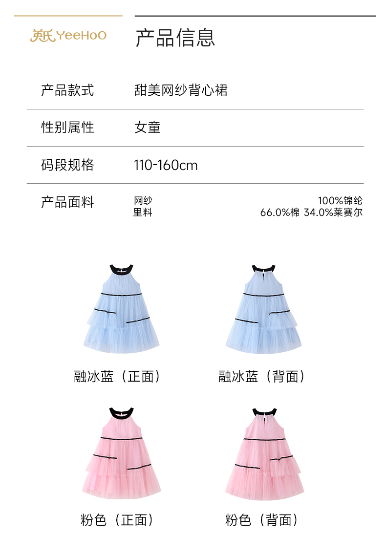 英氏儿童裙子女童夏季背心圆领休闲透气蓬蓬纱裙女宝26新款公主裙