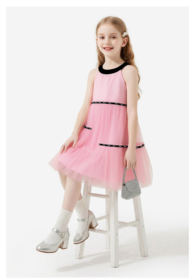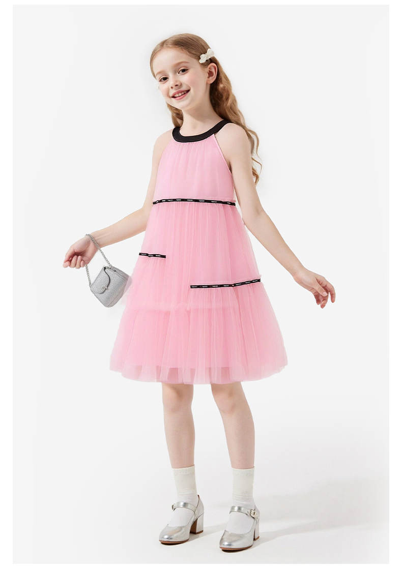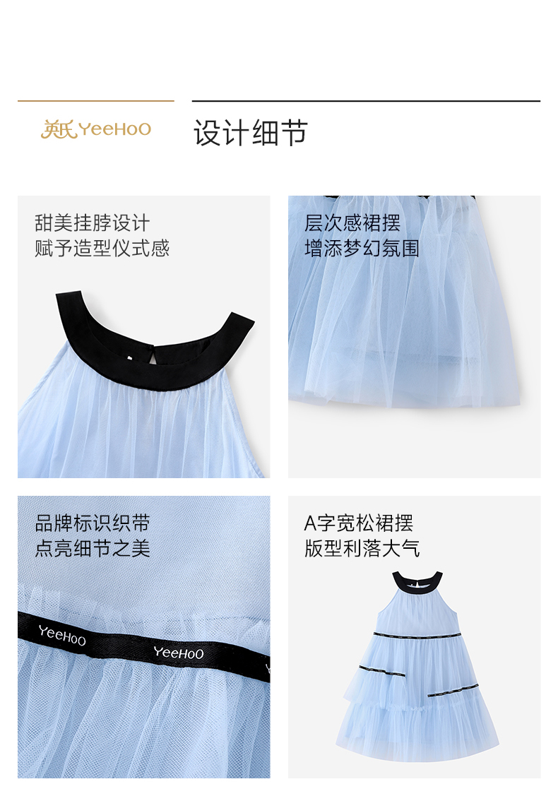 英氏儿童裙子女童夏季背心圆领休闲透气蓬蓬纱裙女宝26新款公主裙