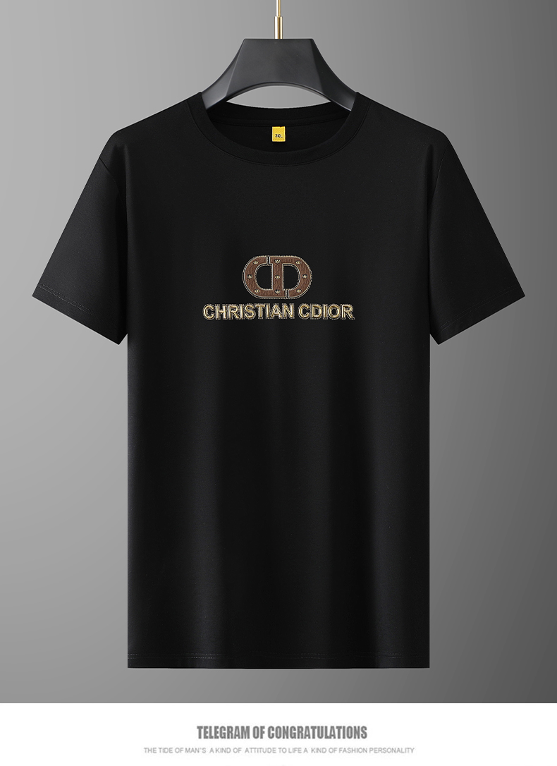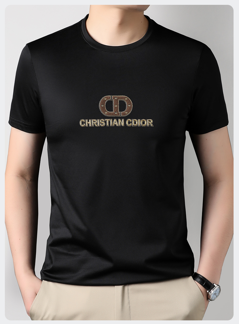 【Q】【桑蚕丝】【莱赛尔】【新款DG】大依优型大码短袖T恤圆领胸前印花加肥加大男士大号弹力透气舒适半袖夏装