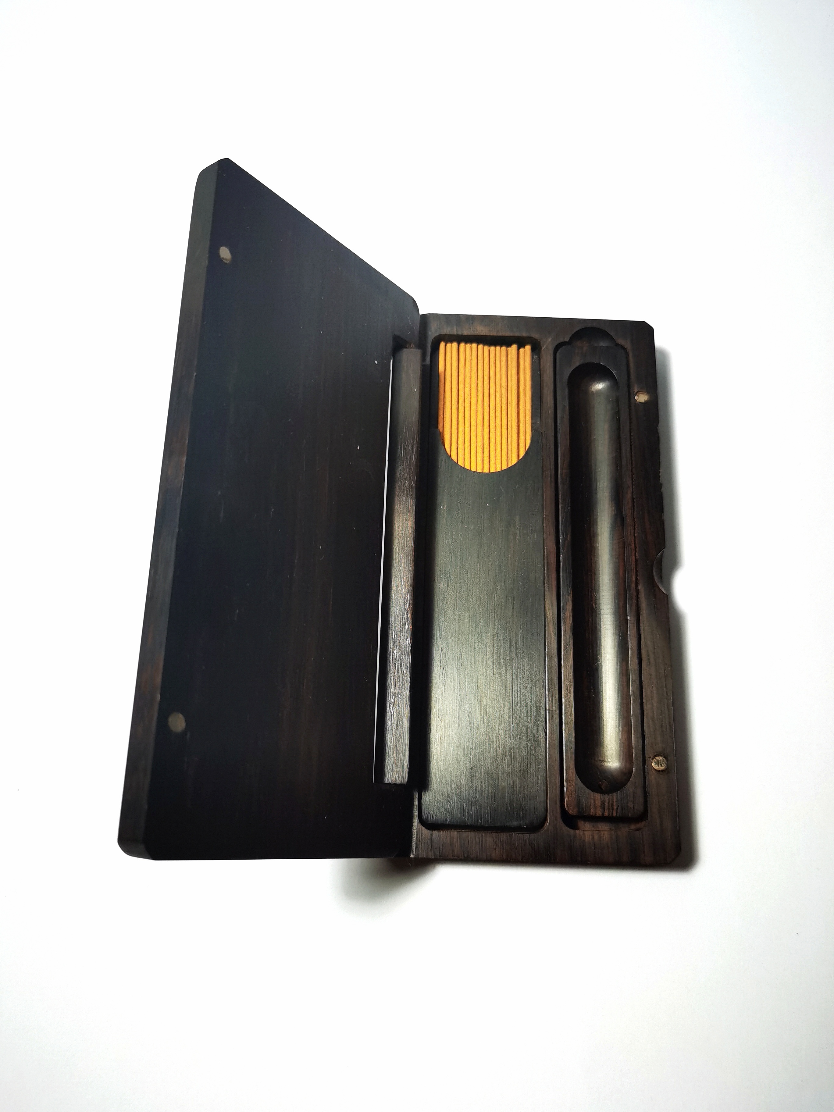 包装:黑檀镶银丝香插盒便携装(含布袋)