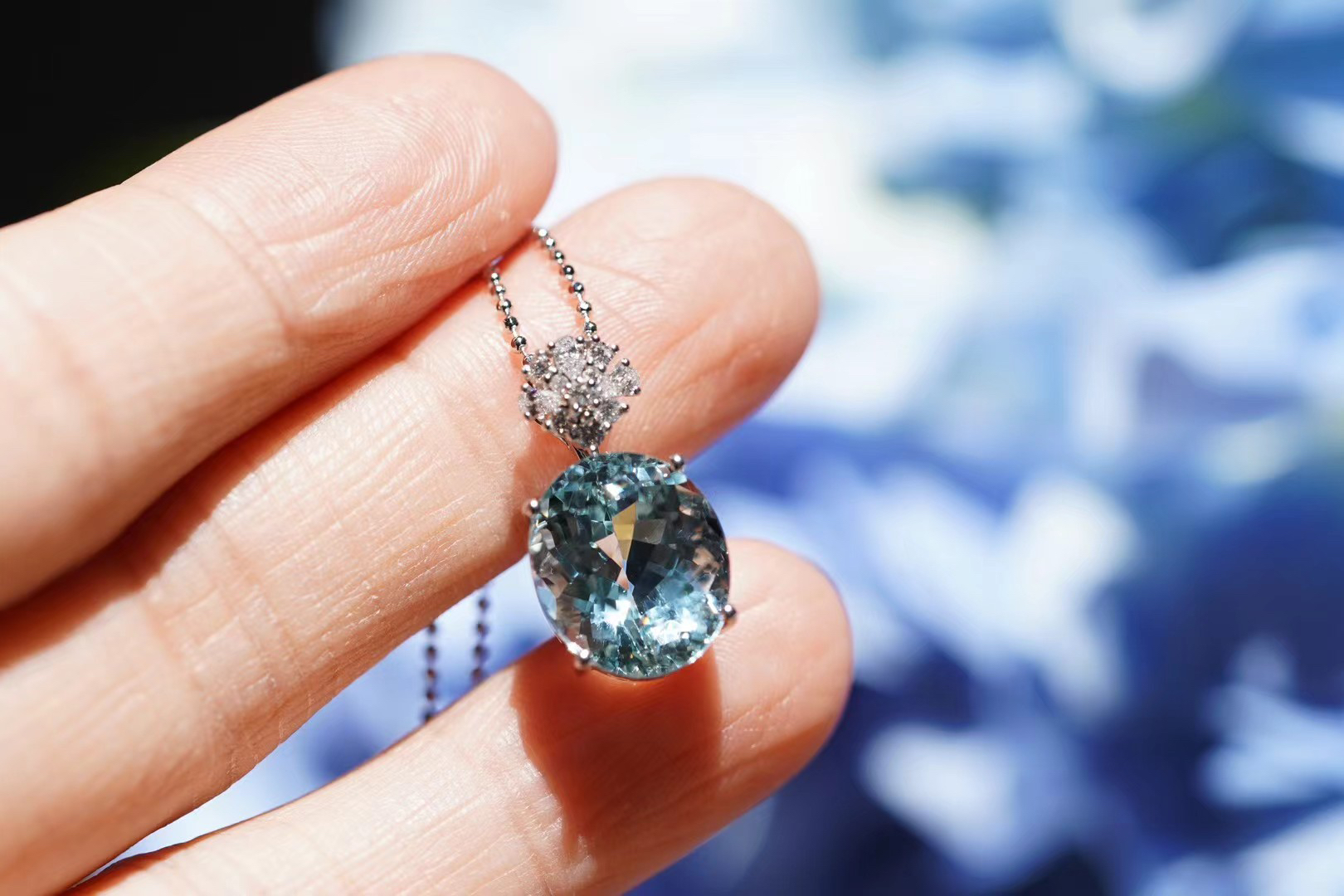 【喆】海蓝宝鸽子蛋吊坠