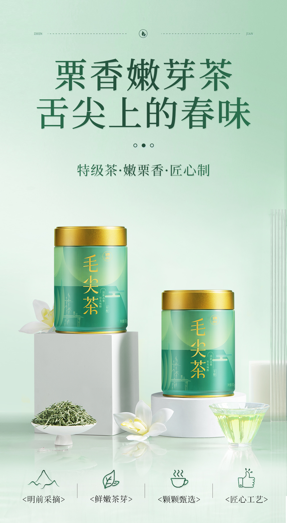 【臻尖-毛尖至醇】新茶 毛尖绿茶明前独芽80g*2罐