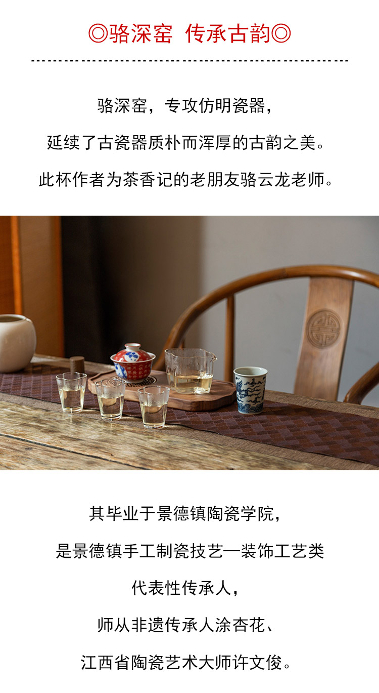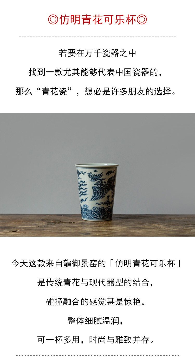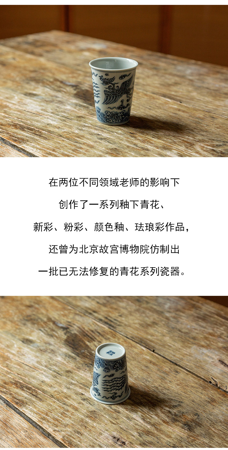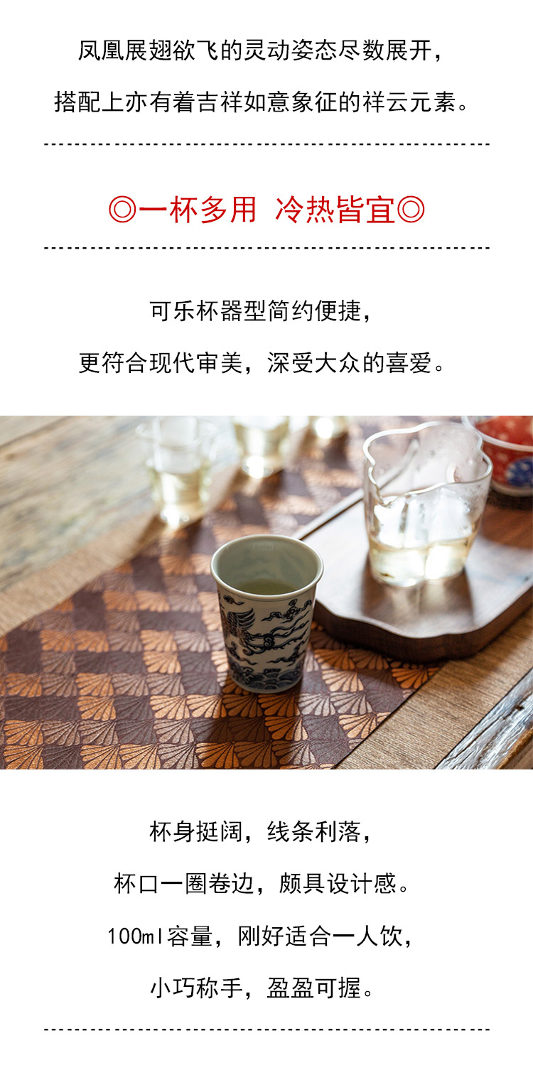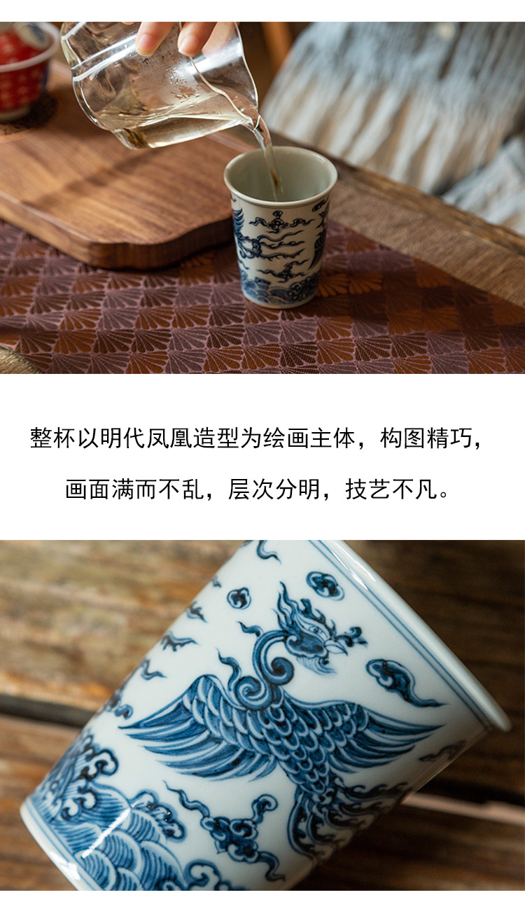 茶香记 骆深窑仿明青花凤凰可乐杯100ml一杯多用陶瓷主人杯茶杯