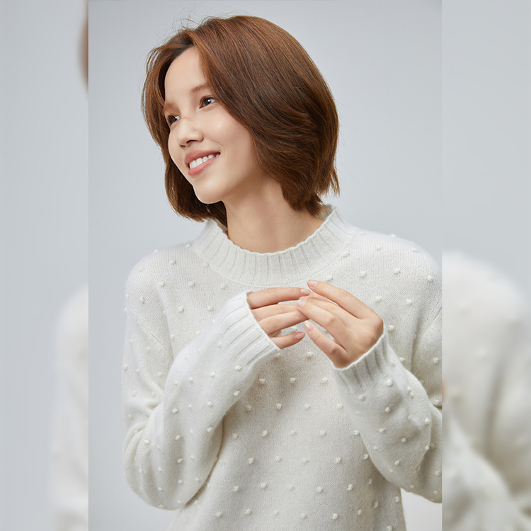 VogoPetite设计感立体肌理圆领套衫100%山羊绒 BP132E1204