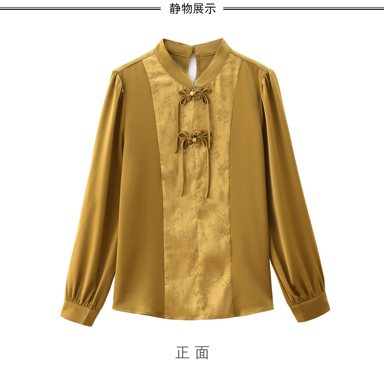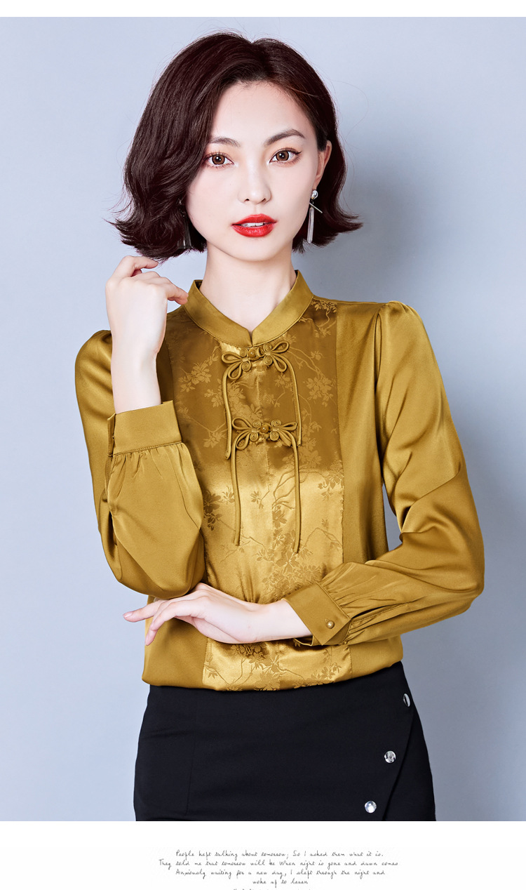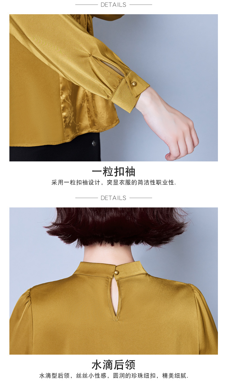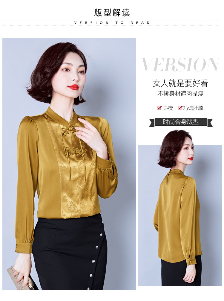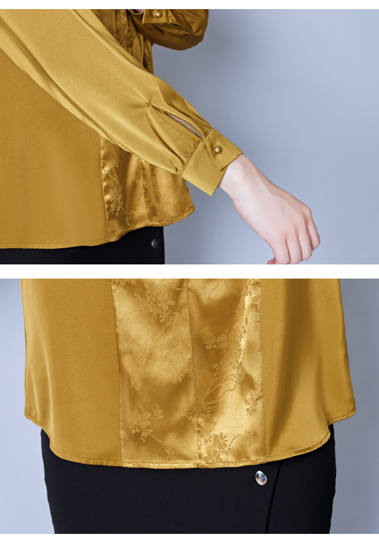 KQL E261N2179 2022秋新款女装仿真丝V领气质百搭长袖衬衫显瘦桑蚕丝衬衣上衣