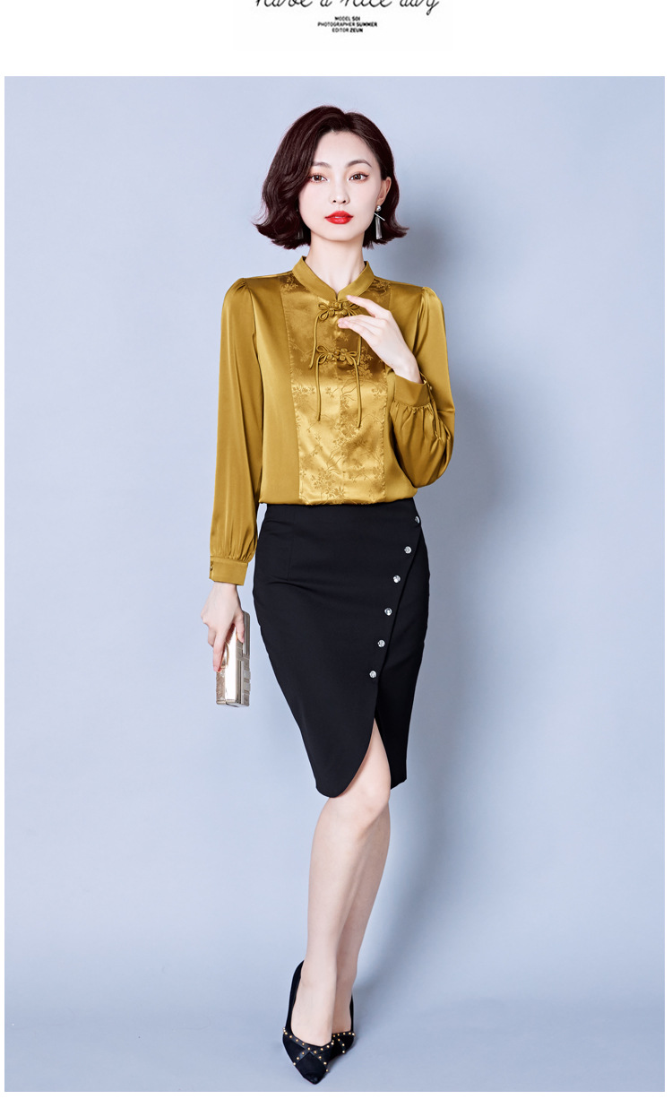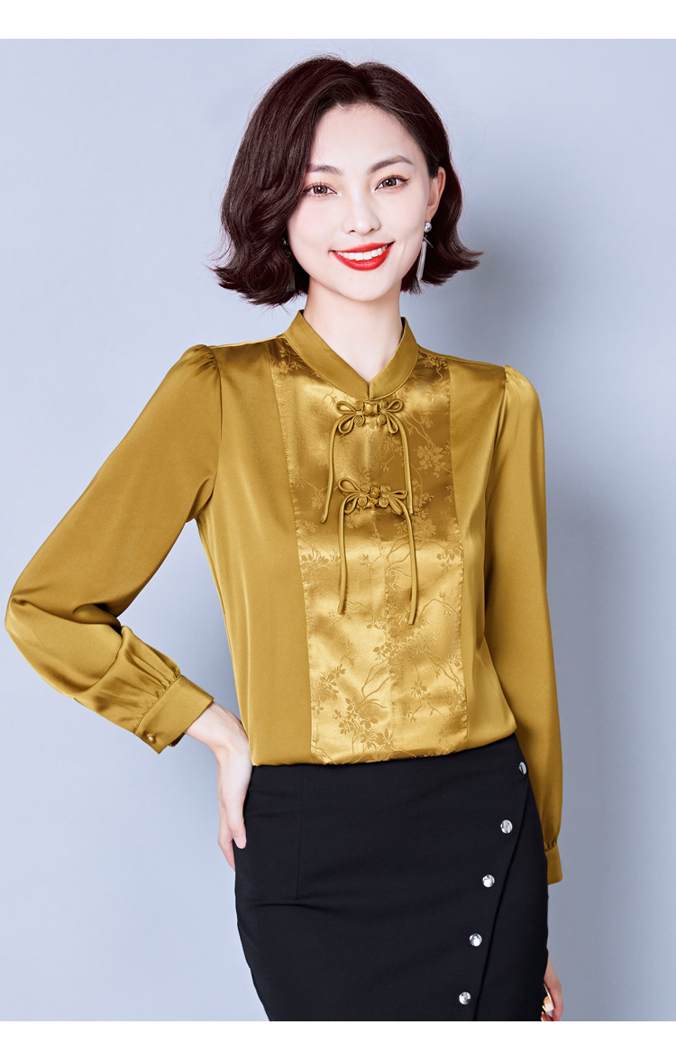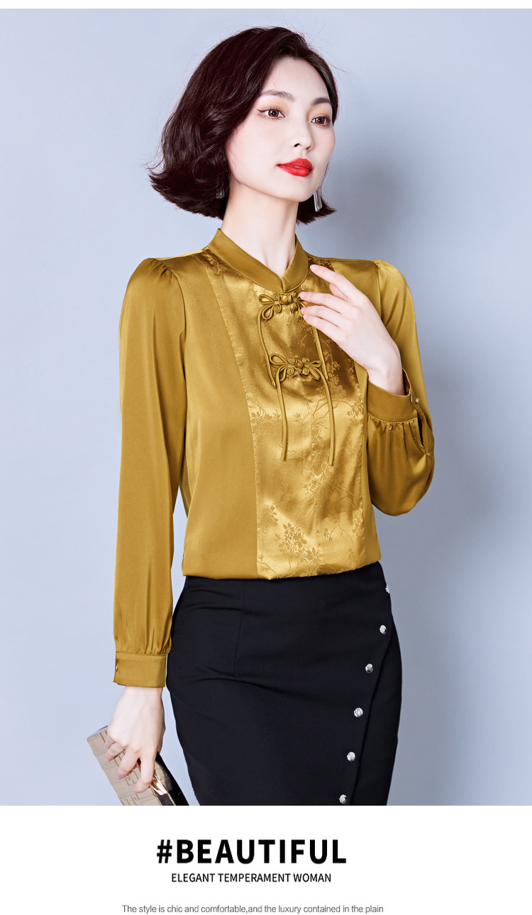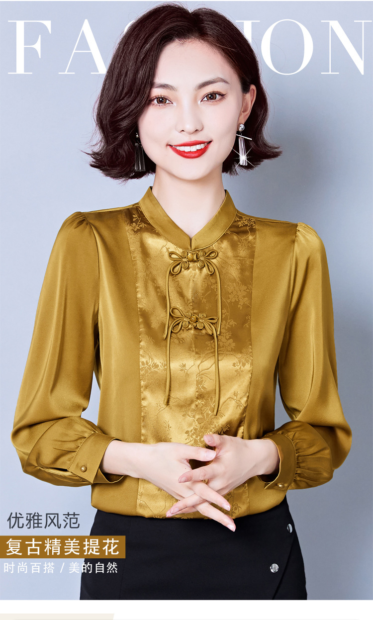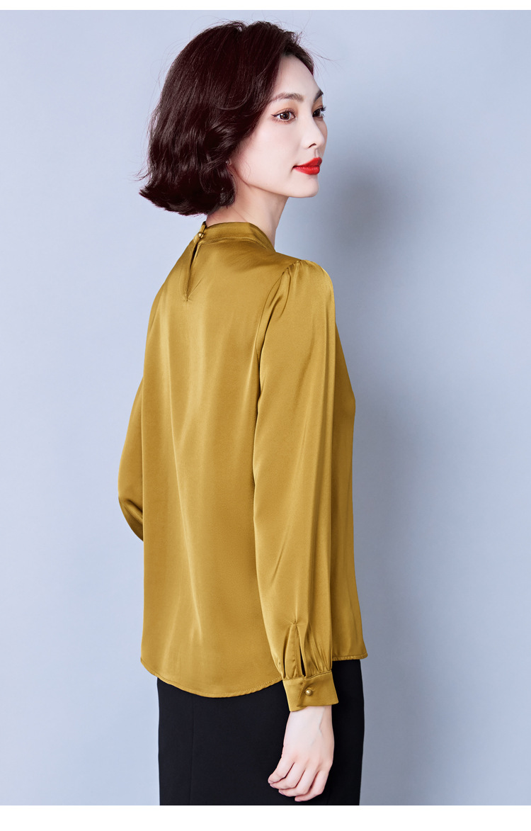 KQL E261N2179 2022秋新款女装仿真丝V领气质百搭长袖衬衫显瘦桑蚕丝衬衣上衣