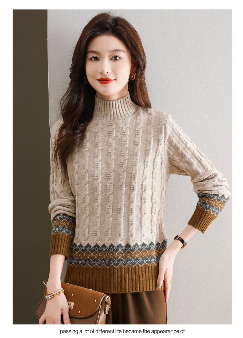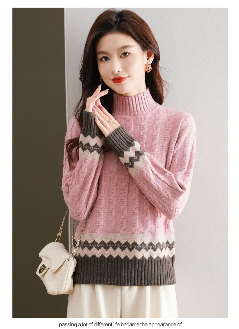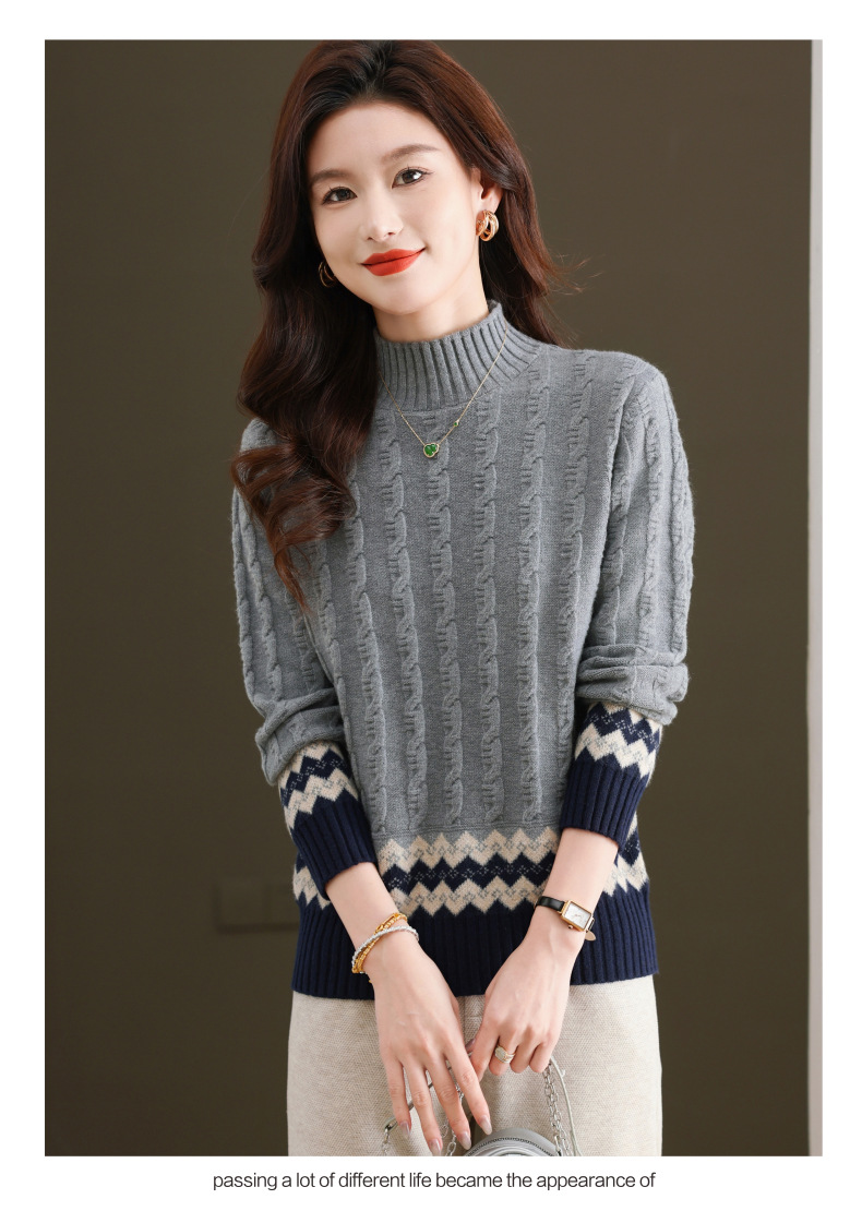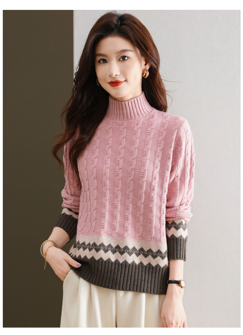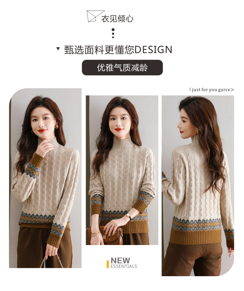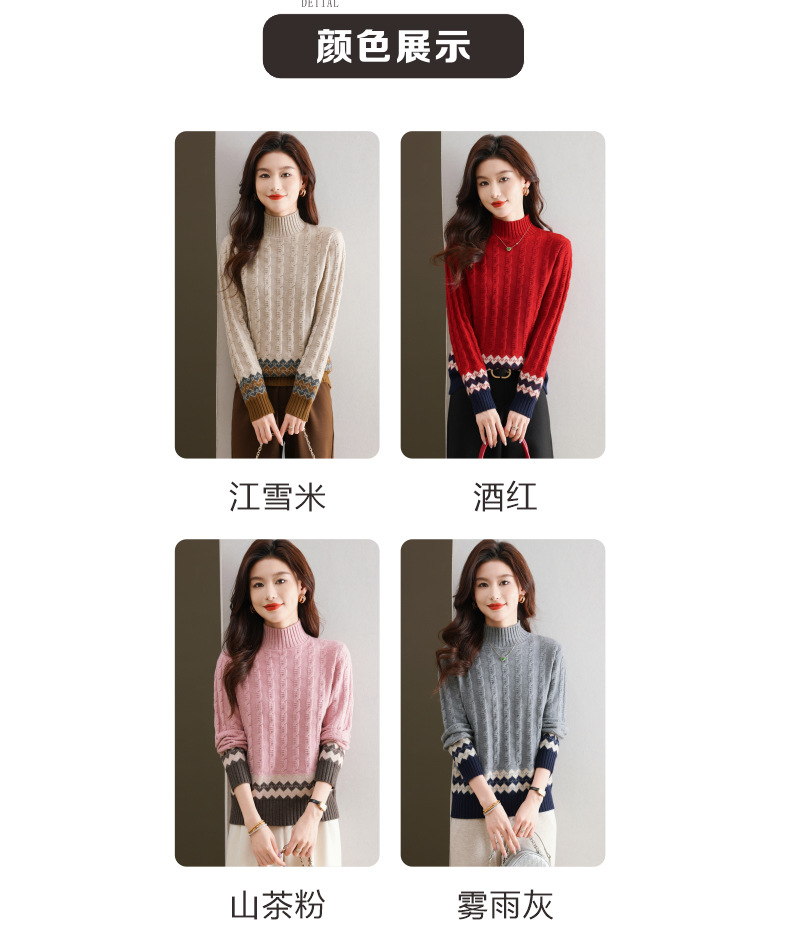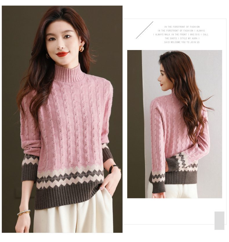 CC-103-H6131秋冬季上衣女士打底衫2024新款洋气绞花毛衣内搭拼色针织