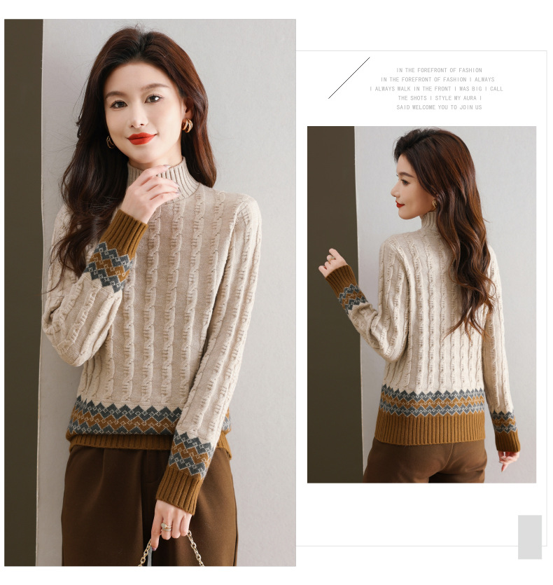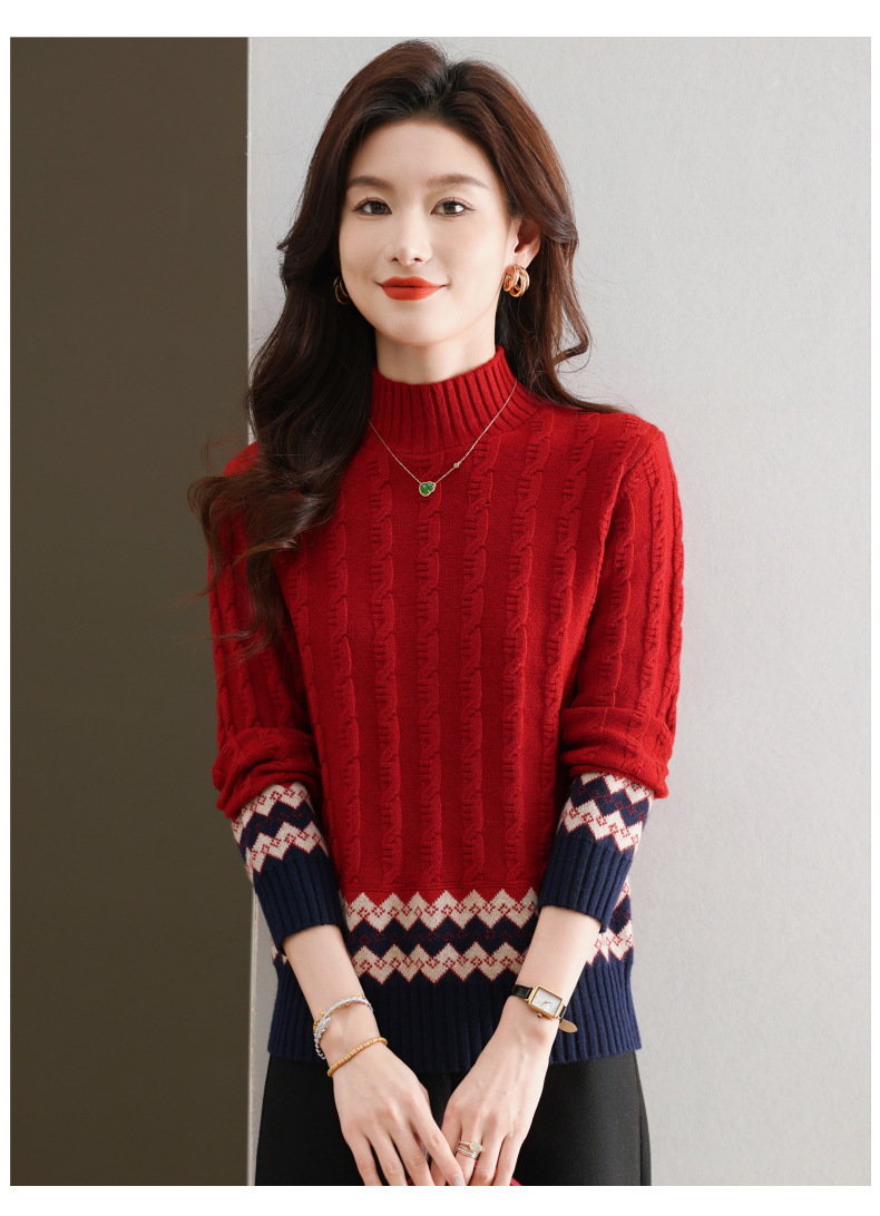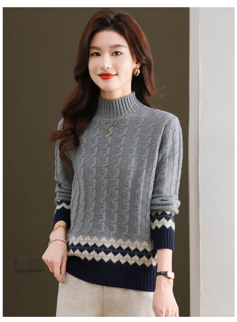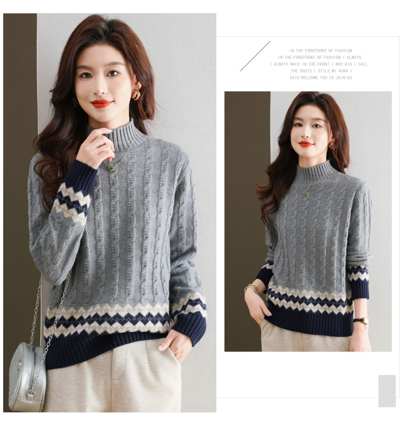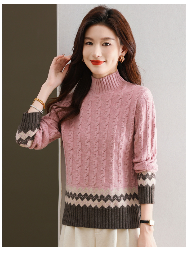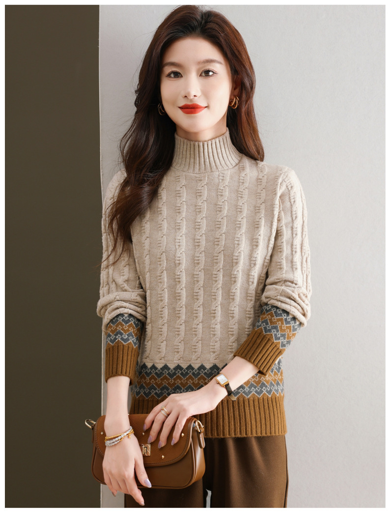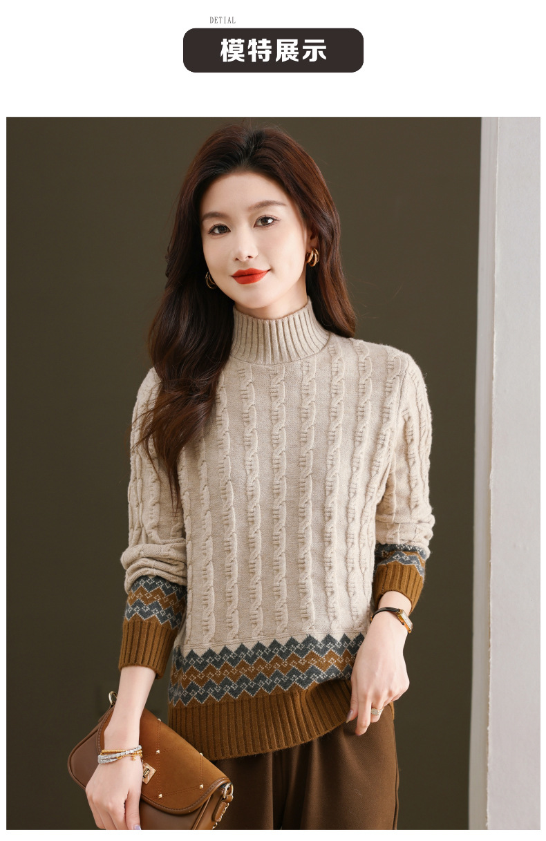 CC-103-H6131秋冬季上衣女士打底衫2024新款洋气绞花毛衣内搭拼色针织