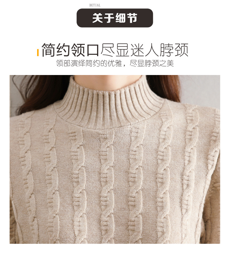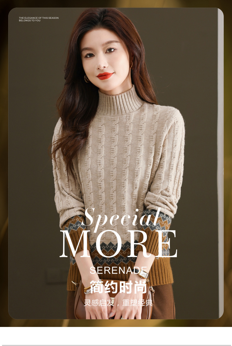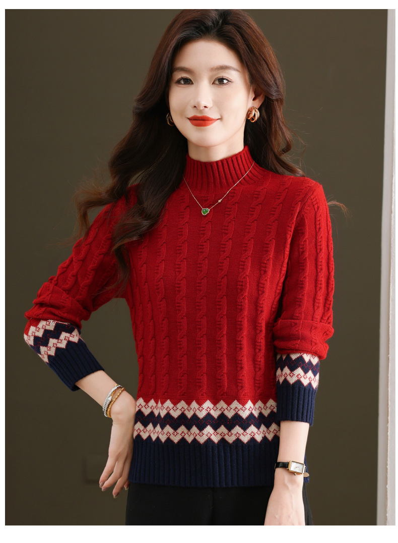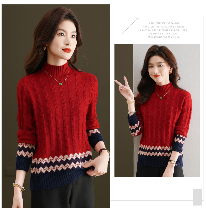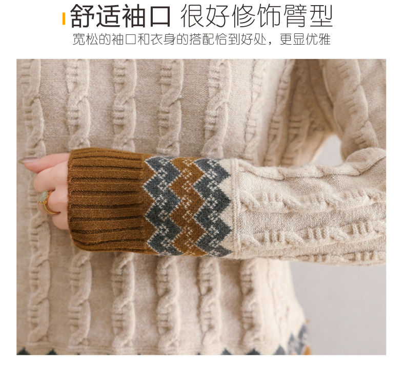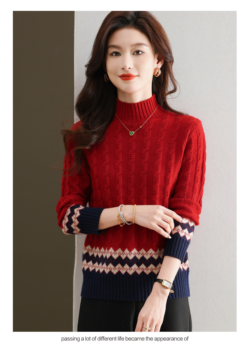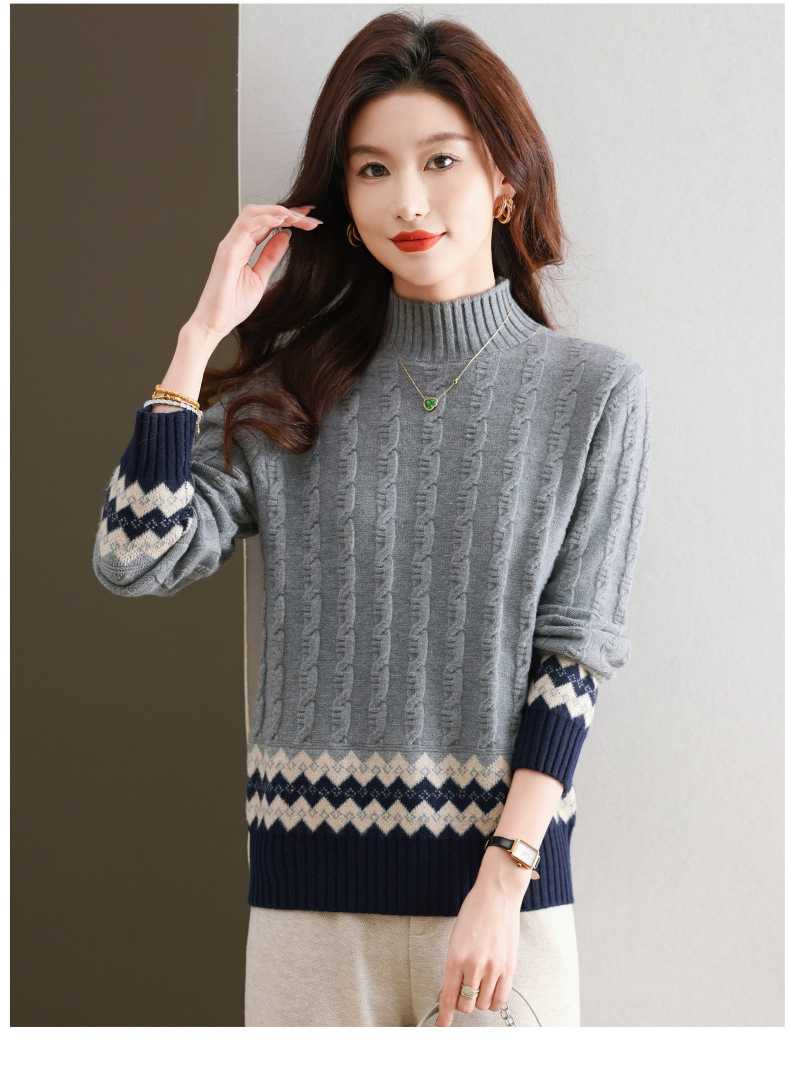 CC-103-H6131秋冬季上衣女士打底衫2024新款洋气绞花毛衣内搭拼色针织