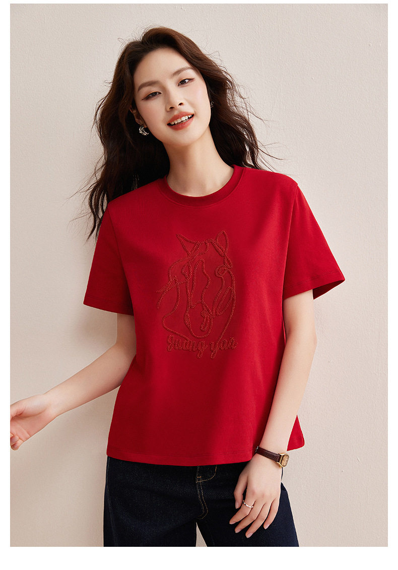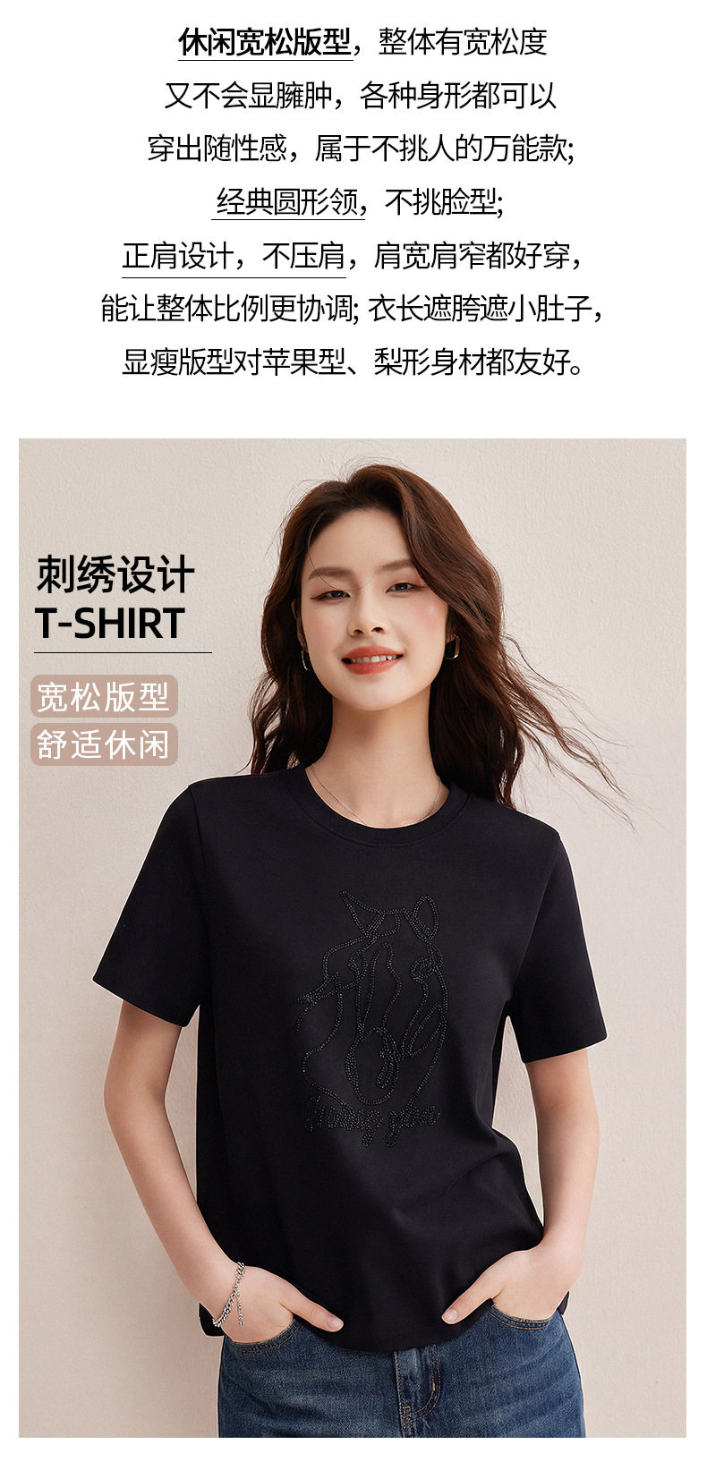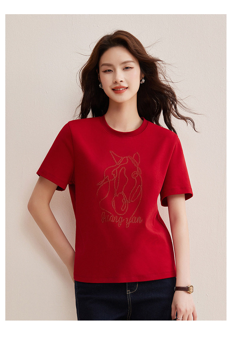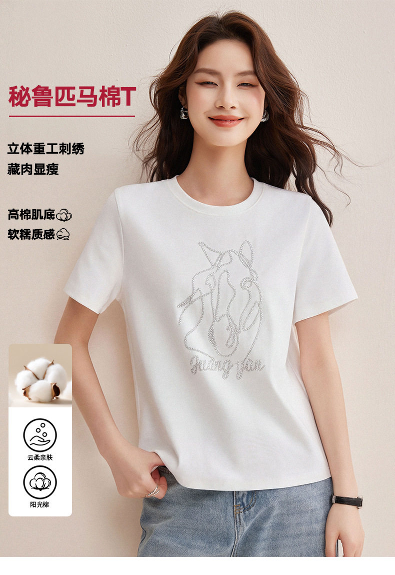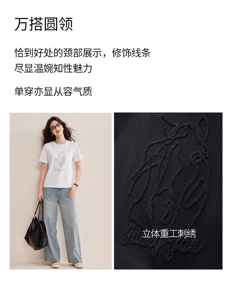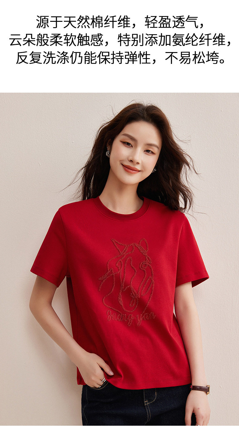 「自j」全新升级【铂金会员128/天猫169/差价41】(93937)洛诗琳马年限定马到成功T恤2026新款长绒棉立体刺绣短袖