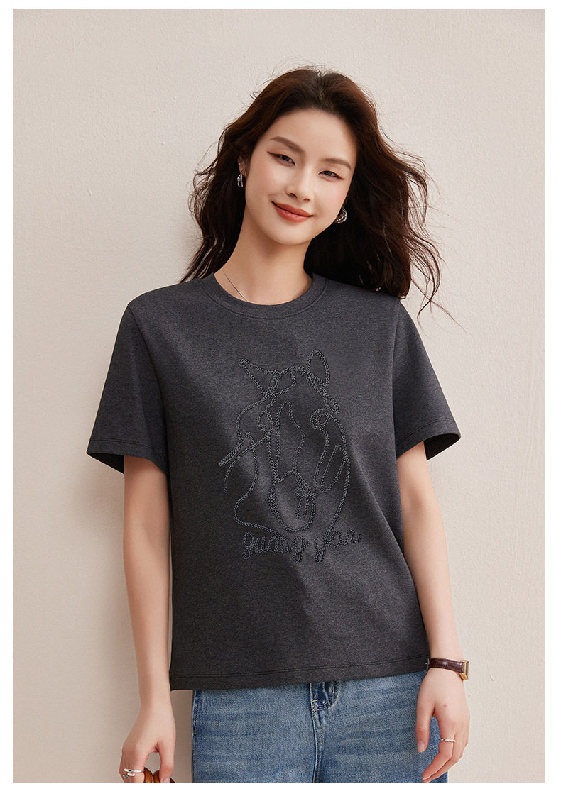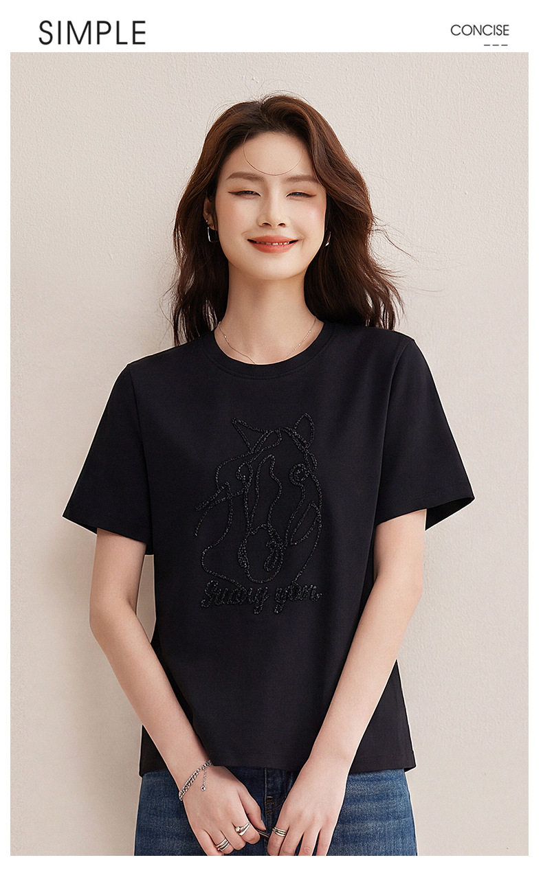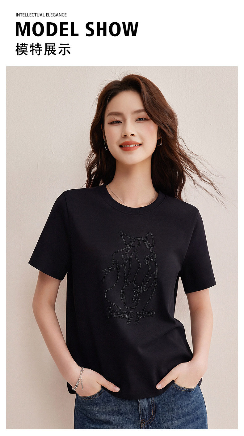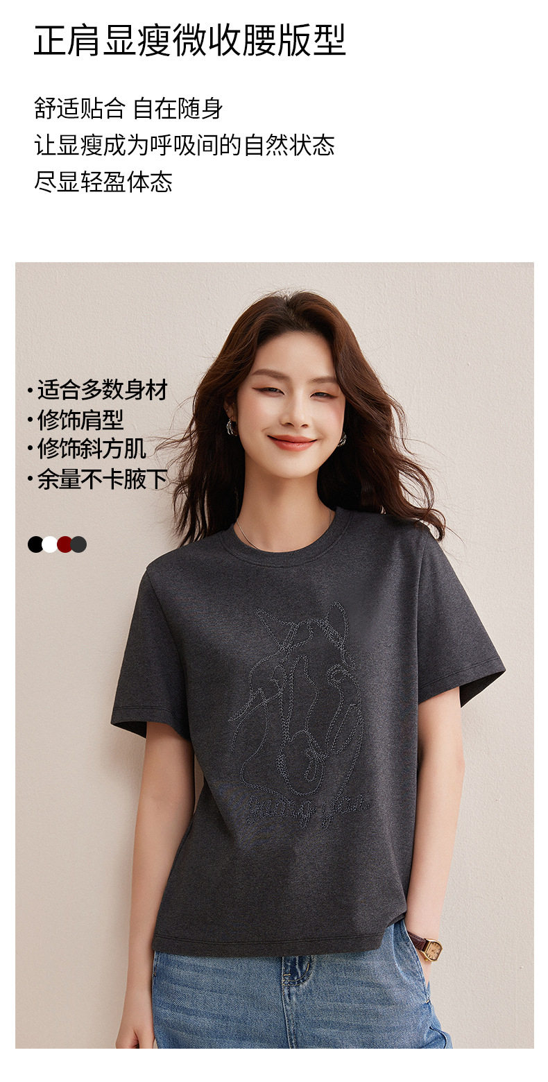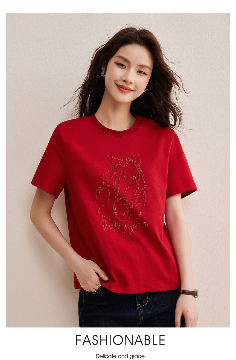 「自j」全新升级【铂金会员128/天猫169/差价41】(93937)洛诗琳马年限定马到成功T恤2026新款长绒棉立体刺绣短袖