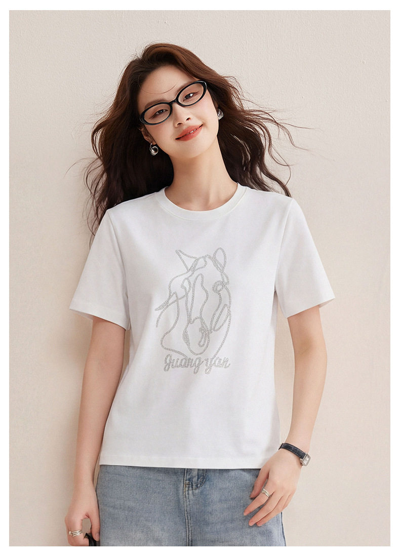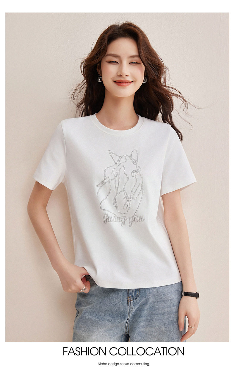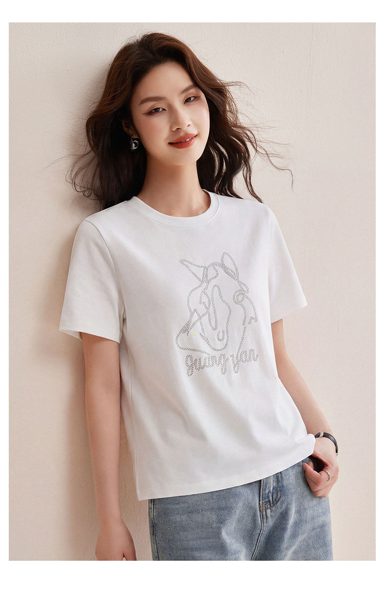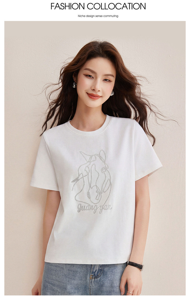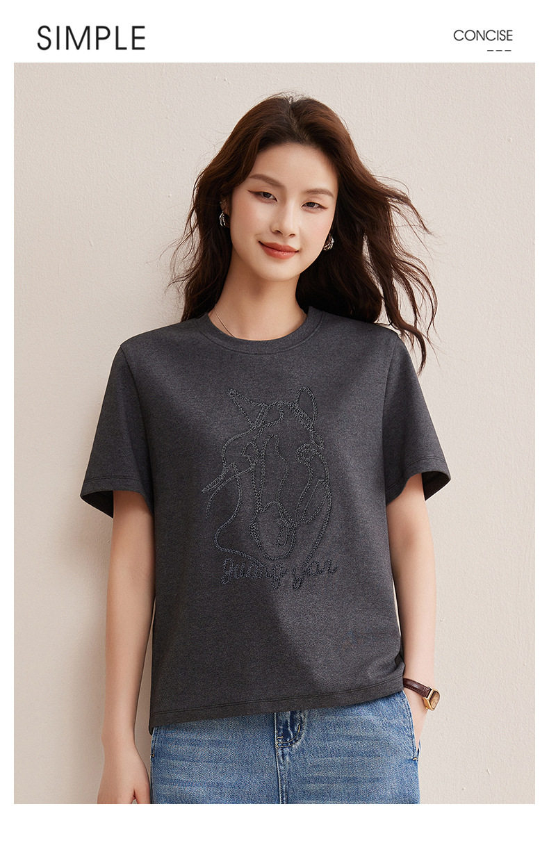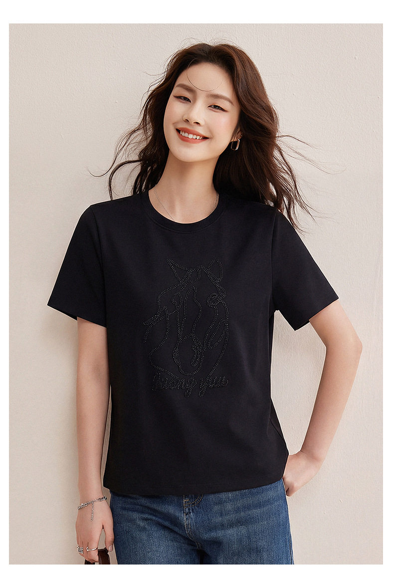 「自j」全新升级【铂金会员128/天猫169/差价41】(93937)洛诗琳马年限定马到成功T恤2026新款长绒棉立体刺绣短袖