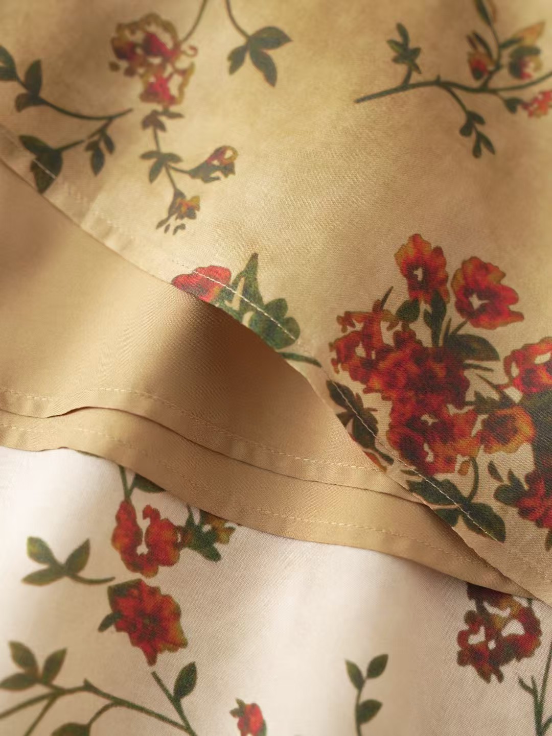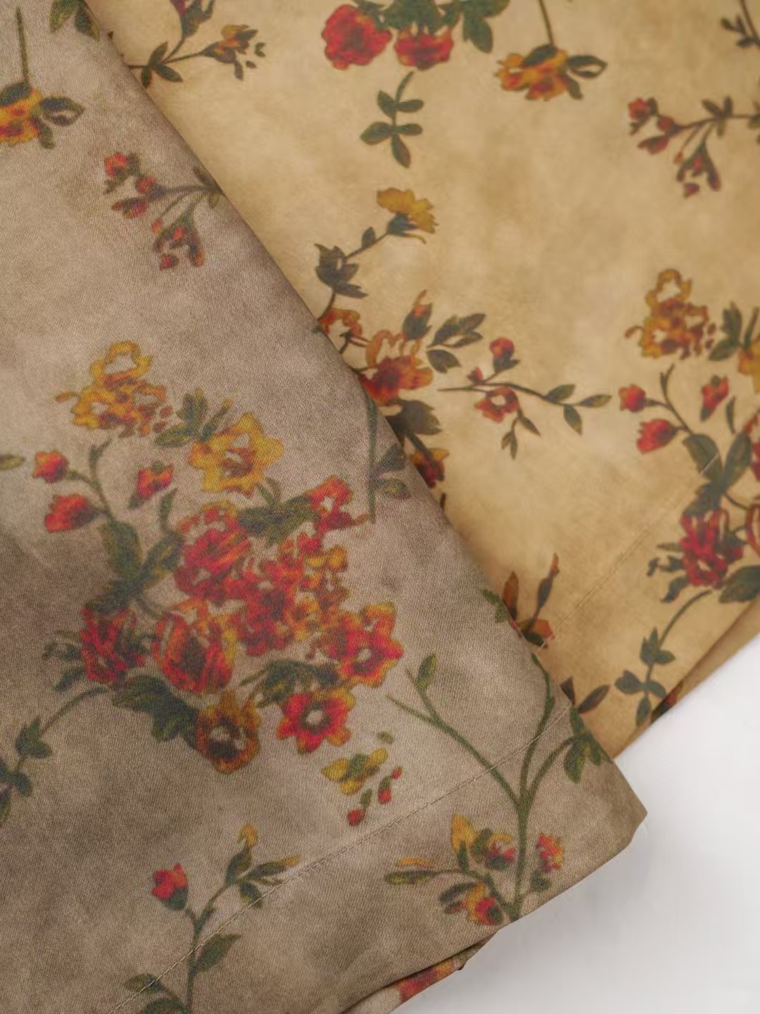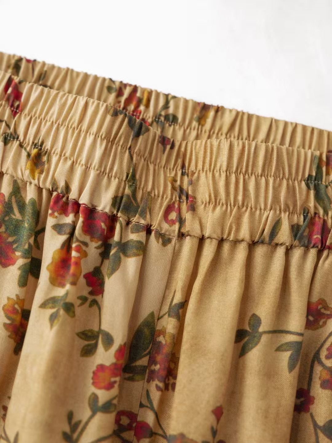 120D铜氨面料经过印花、下水定型呈现绒感的雾面效果,印花工艺的应用,将独特的铁锈花型色彩变化的更为多样,将半裙色彩推向更为丰富的变化中,Umawang的复古感与时尚感,廓形版拖地阔腿裤,沉稳的色彩极具独特效果,知性美感独具魅力,面料手感细腻丝滑,也有挺括的筋骨感,上身体感犹如真丝一般贴肤舒适,裁剪完美的廓形线条,松弛有度极简优雅,松紧腰身毫无拘束的包容性,持久耐用,休闲、旅游、通勤、率性的气质搭配很好的结合在一起,驾驭时尚,与众不同