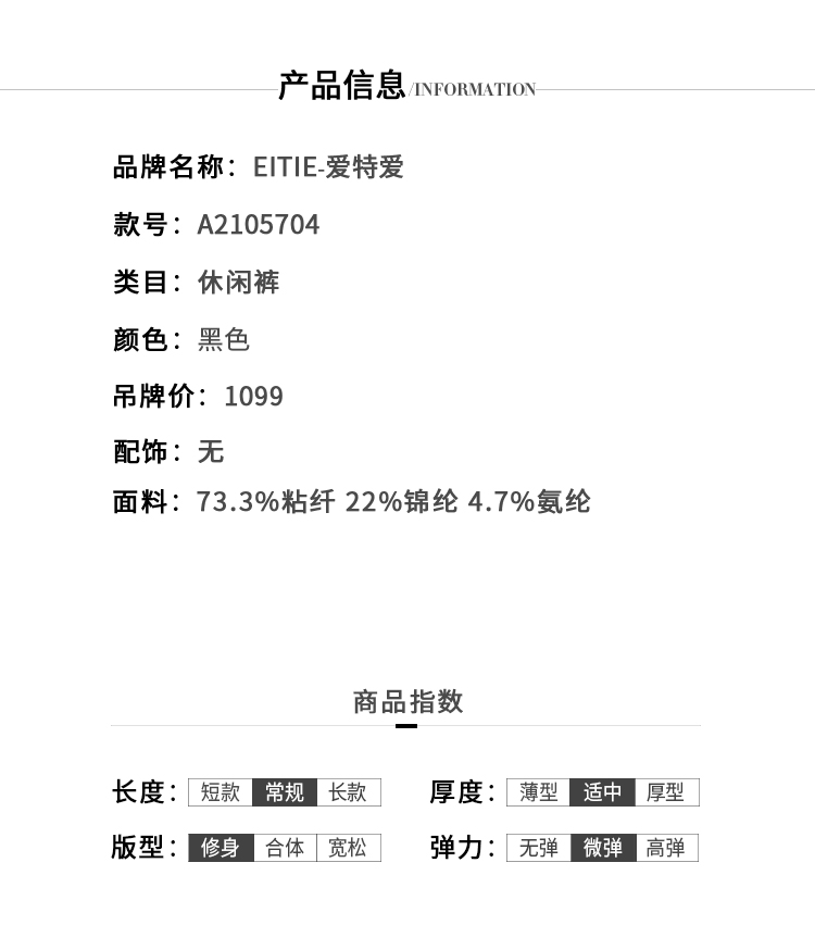 EITIE爱特爱时尚百搭小脚裤打底裤高腰长裤A2105704