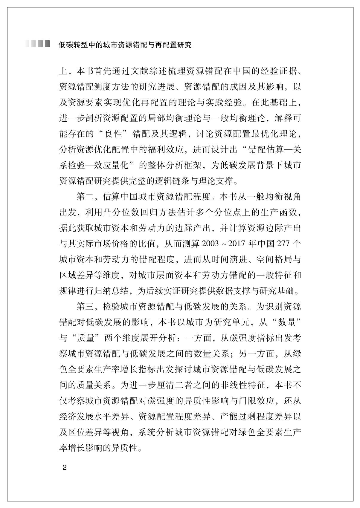 低碳转型中的城市资源错配与再配置研究