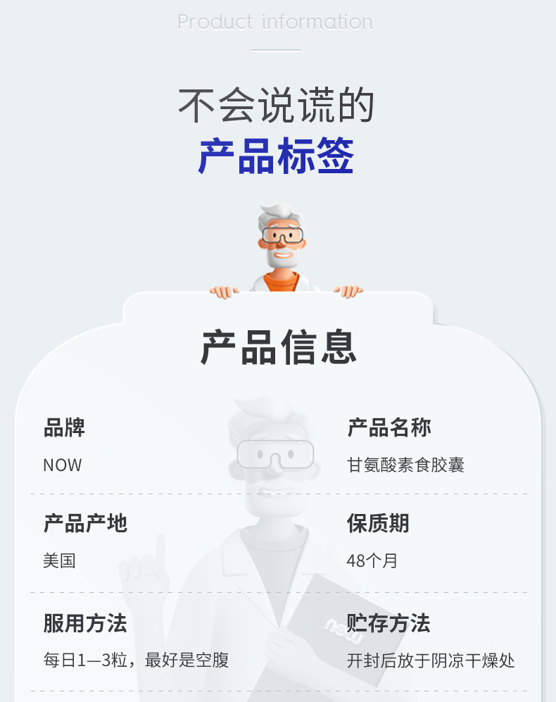 【NOW】美国 诺奥 甘氨酸胶囊1000毫克100粒/瓶
