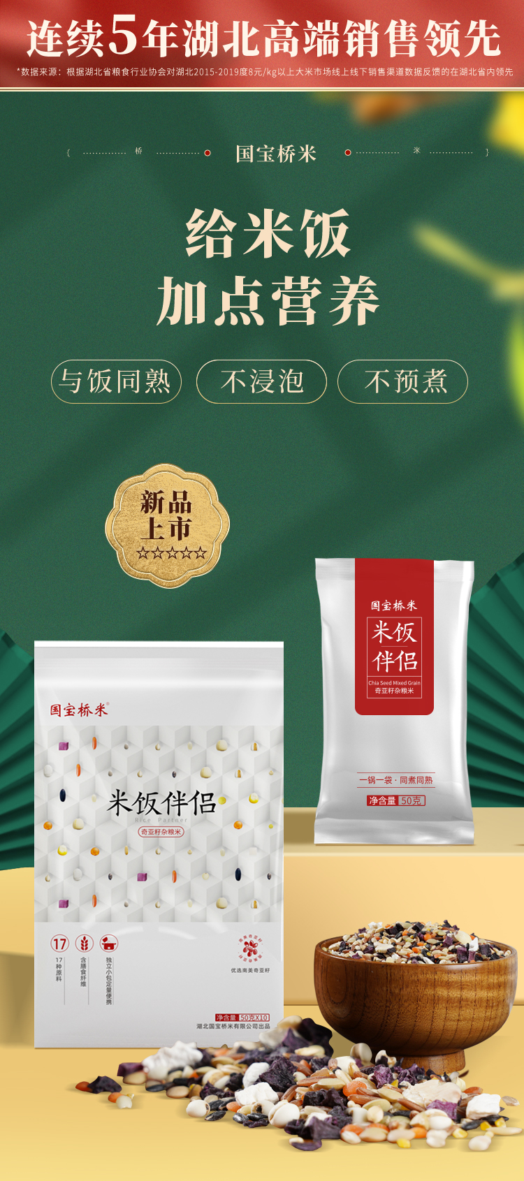 国宝桥米米饭伴侣奇亚籽五谷杂粮饭袋装大米营养粥米杂粮组合粗粮