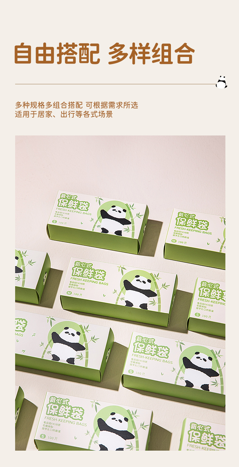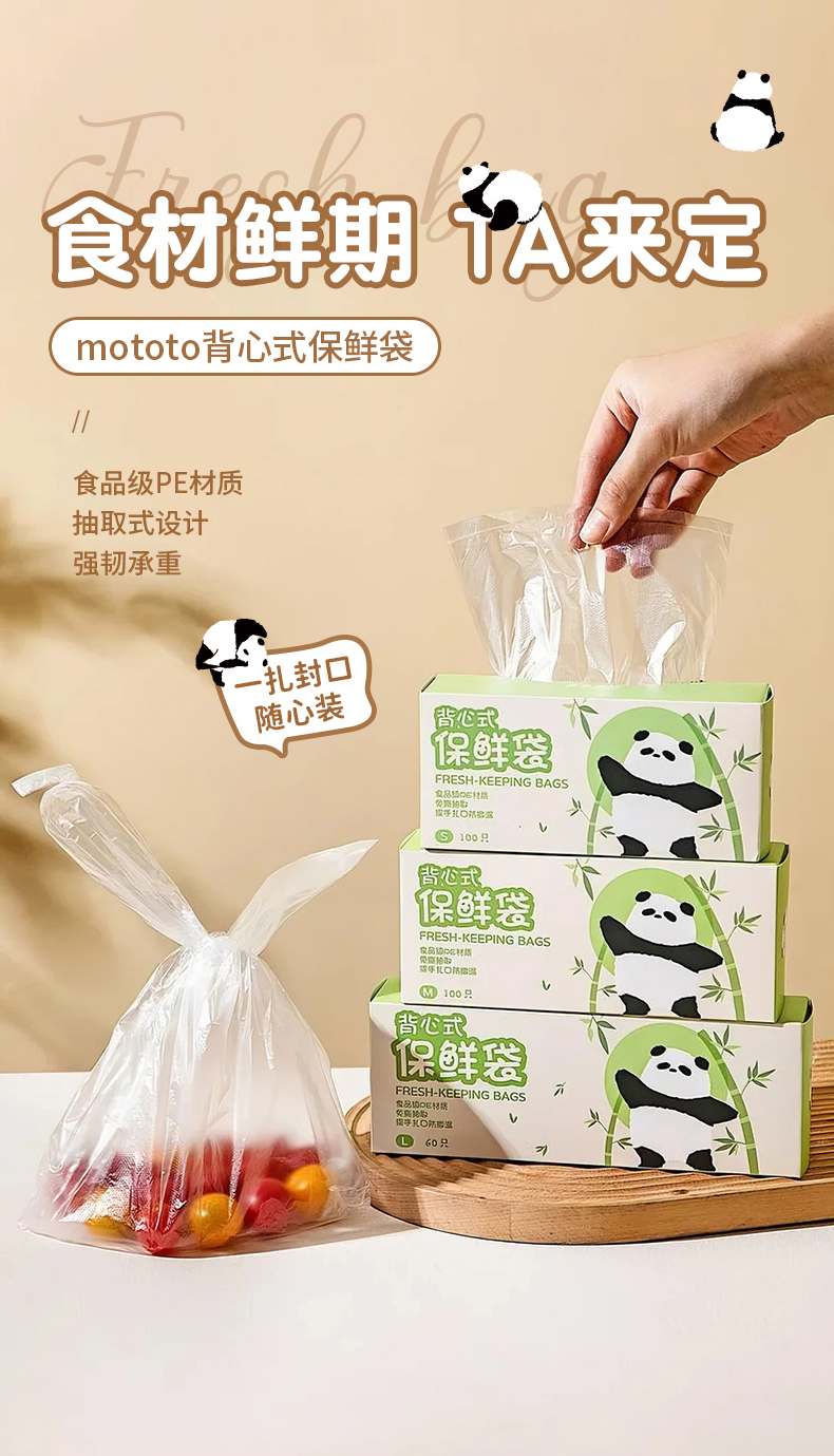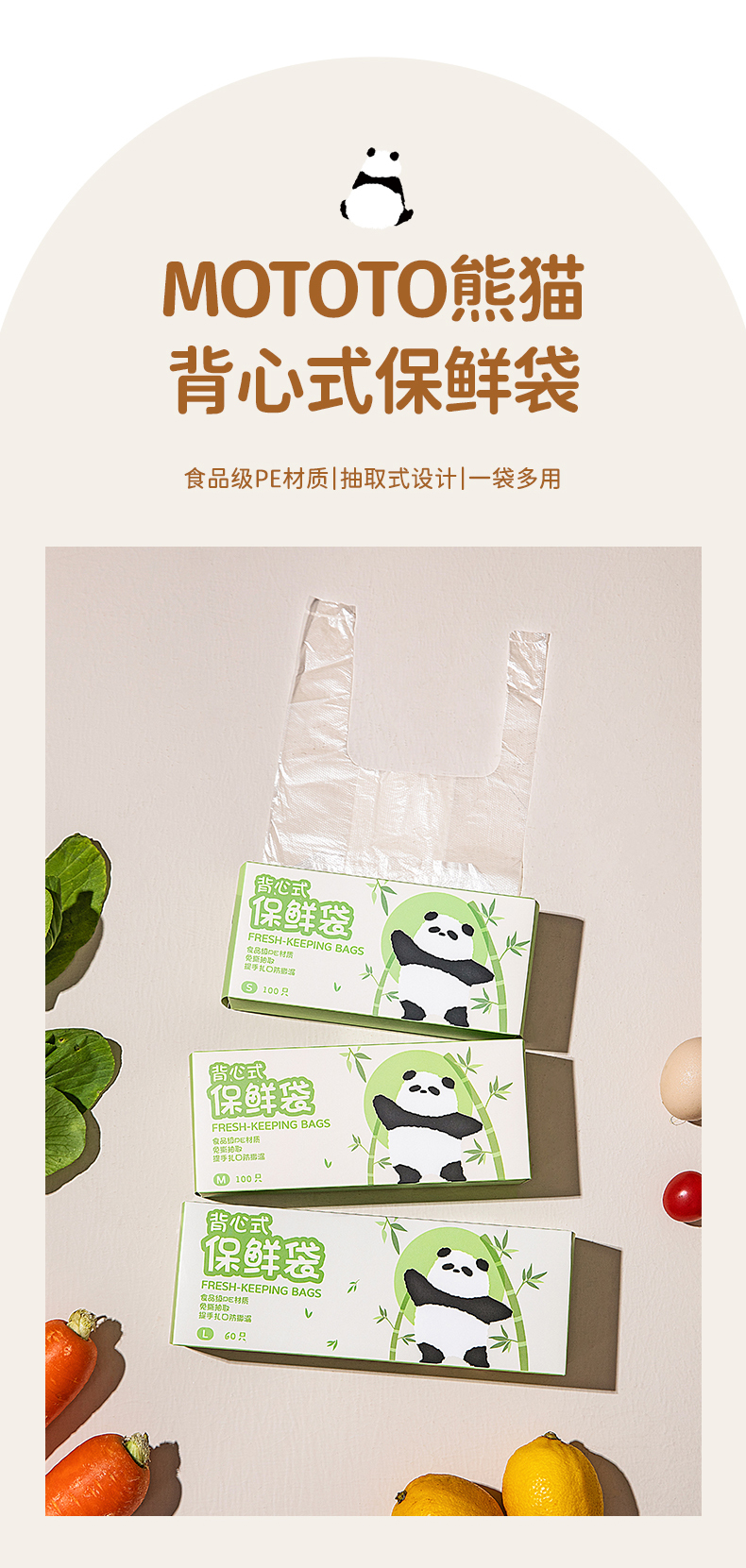 摩登主妇mototo熊猫保鲜袋食品级家用背心式可冷冻食品分装塑料袋