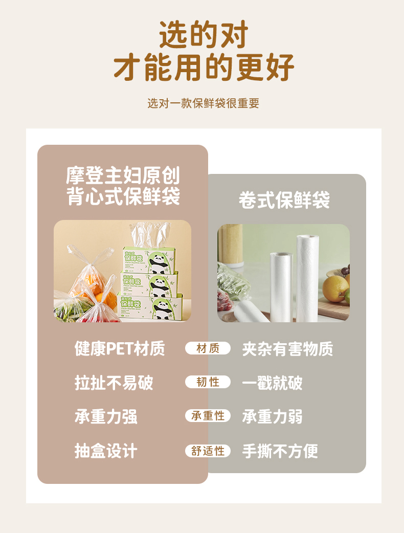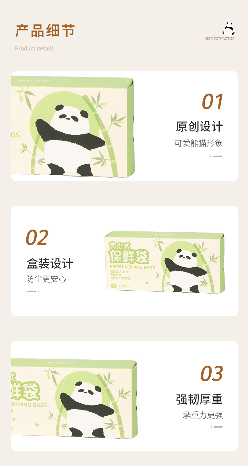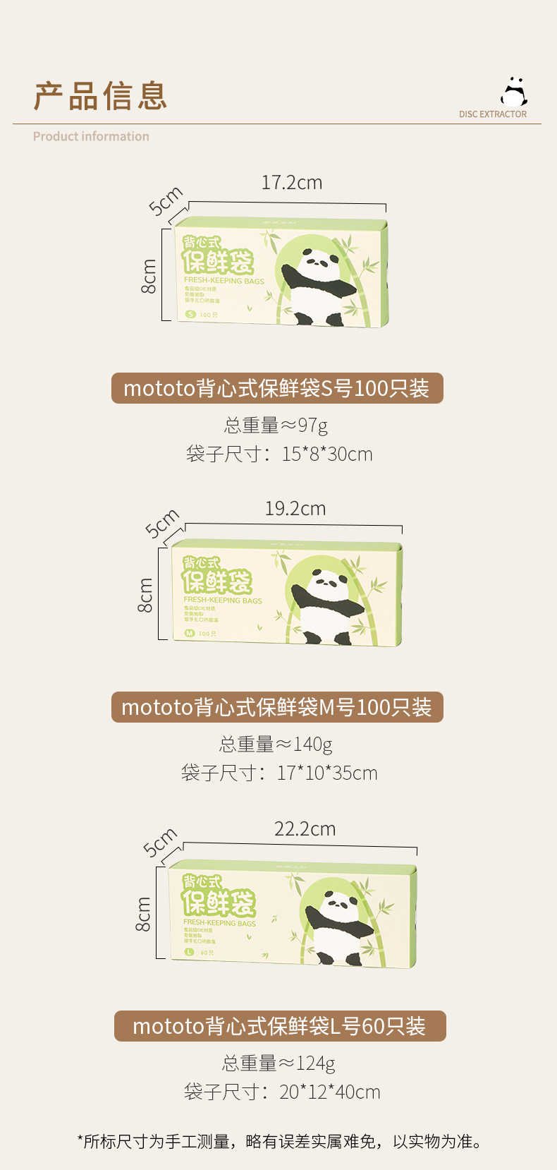 摩登主妇mototo熊猫保鲜袋食品级家用背心式可冷冻食品分装塑料袋