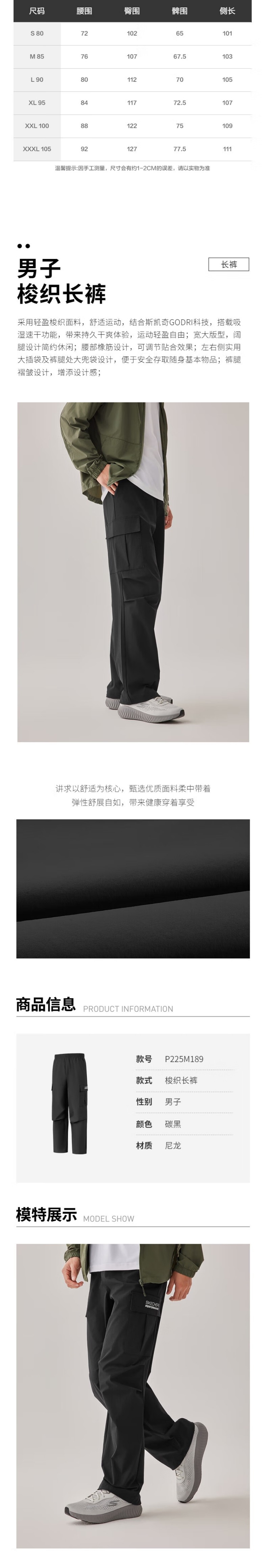 Skechers斯凯奇 男梭织长裤 P225M189-00EG