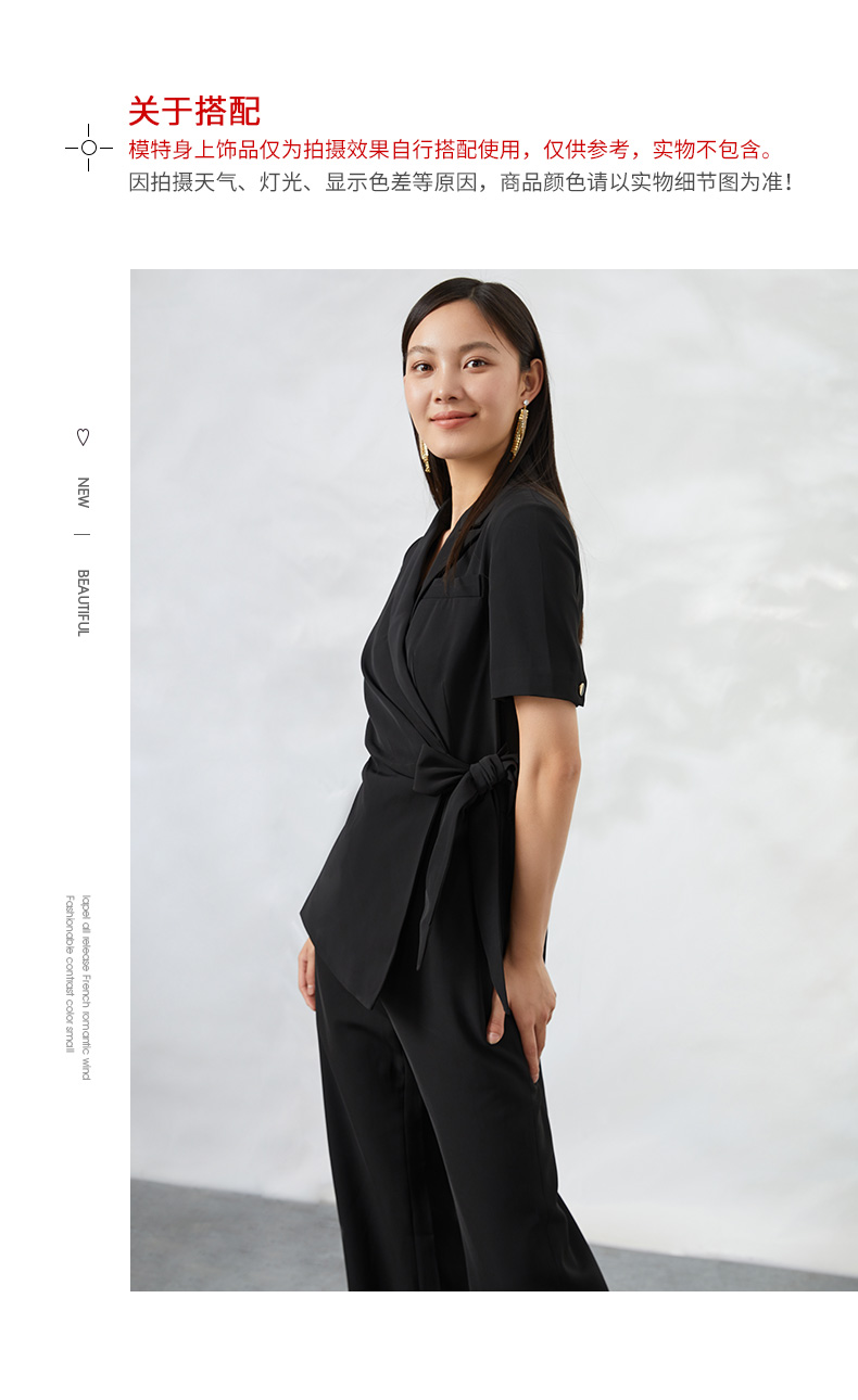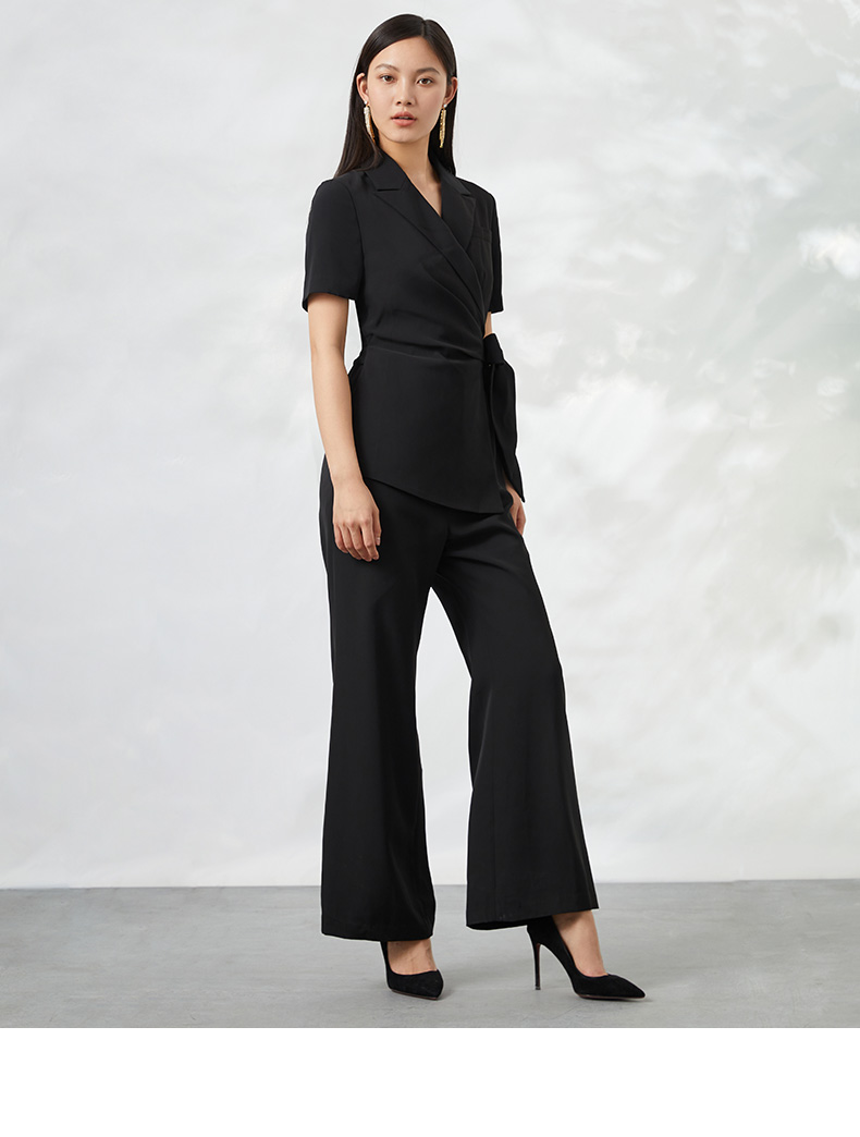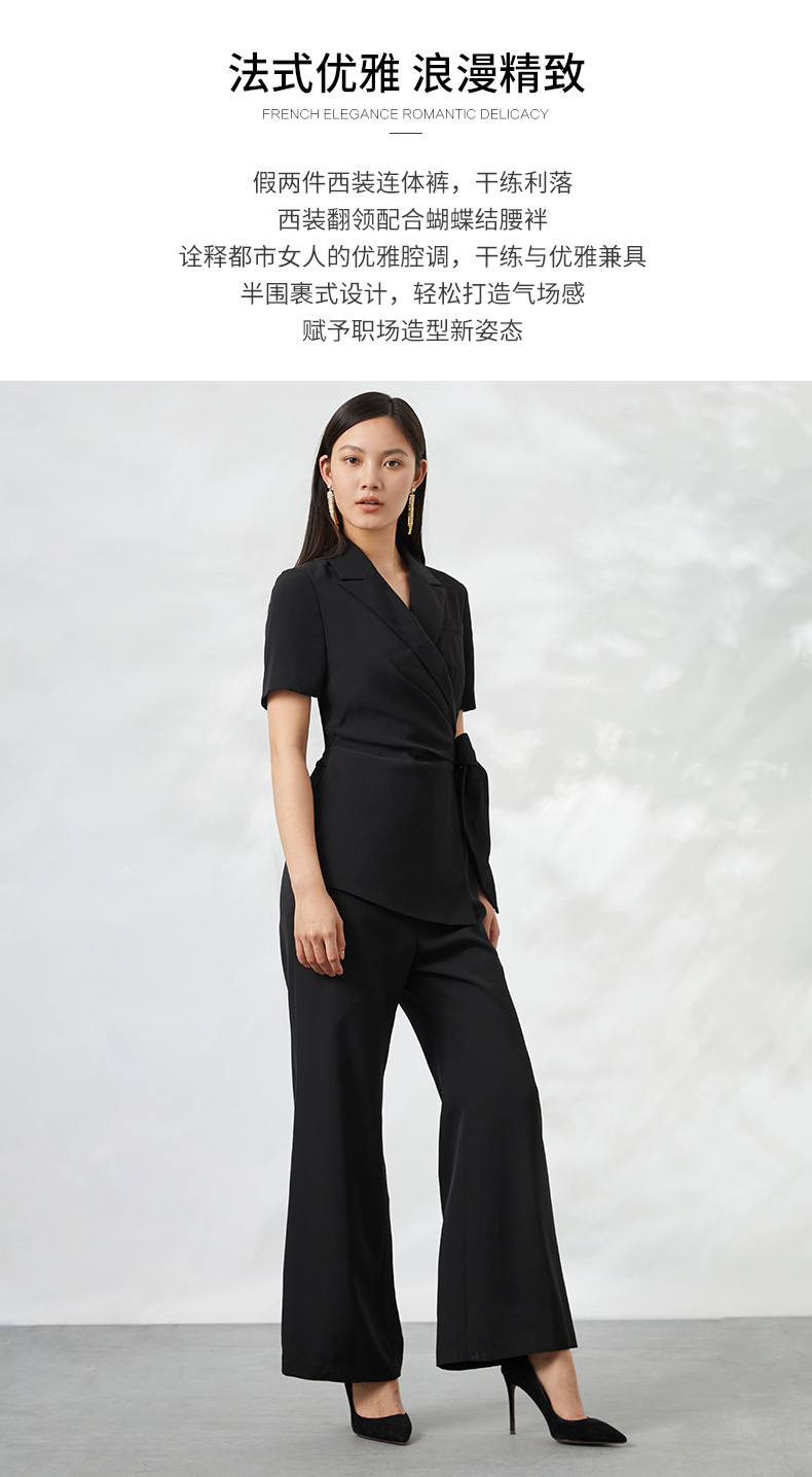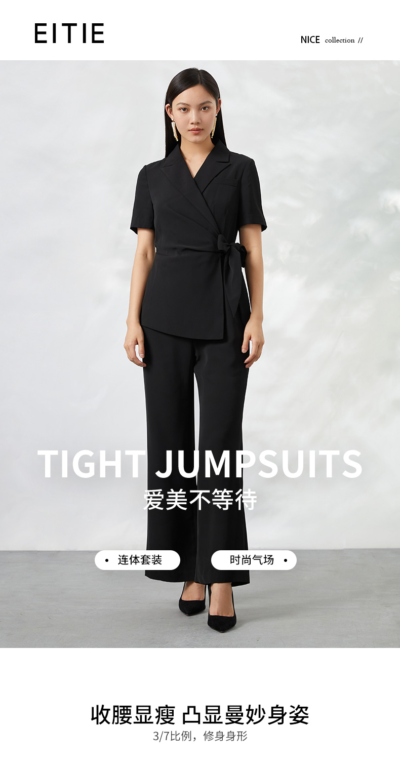 EITIE爱特爱新品高腰修身系带连体裤休闲裤连衣裤裤子女6607378