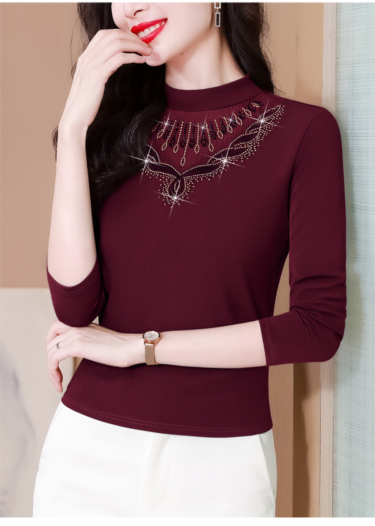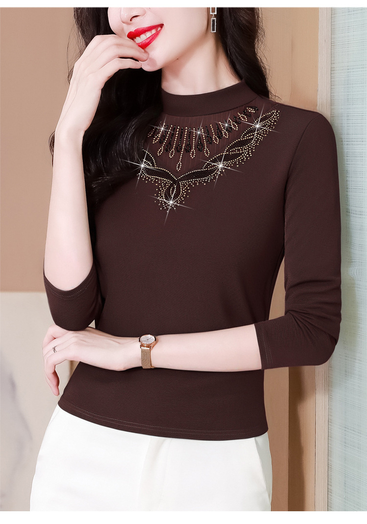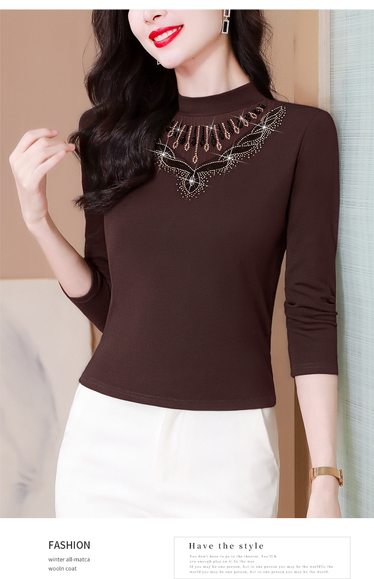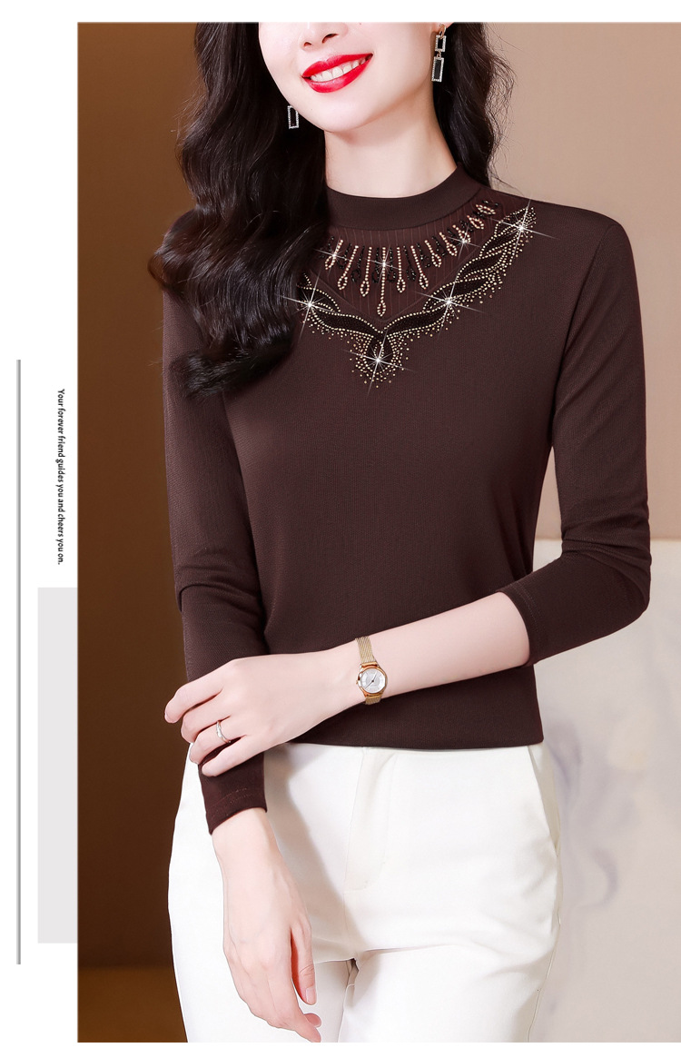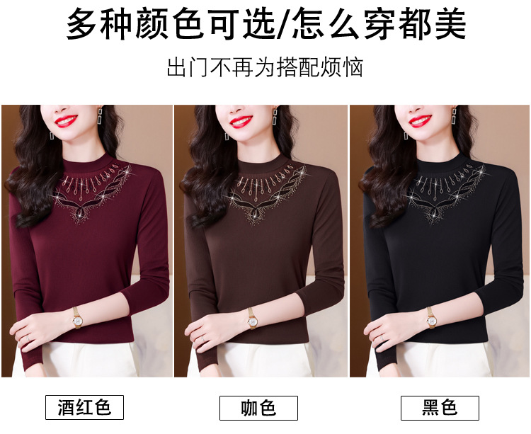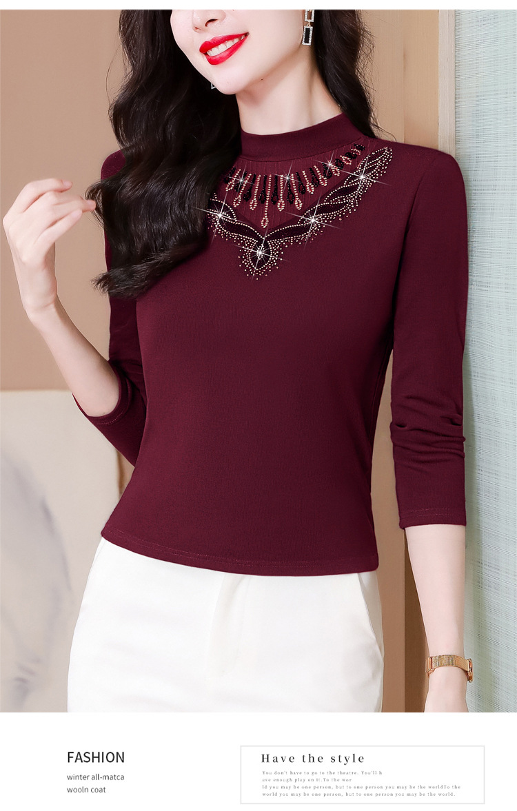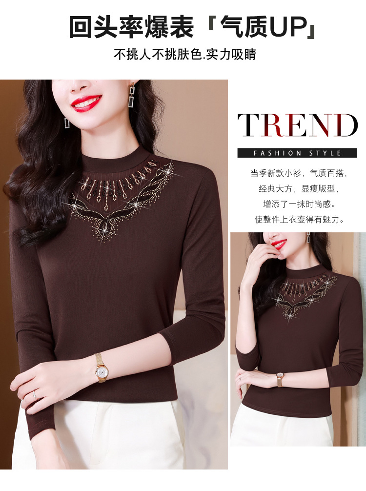 雀说半高圆领打底衫新款长袖加绒加厚洋气小衫内搭上衣AL506