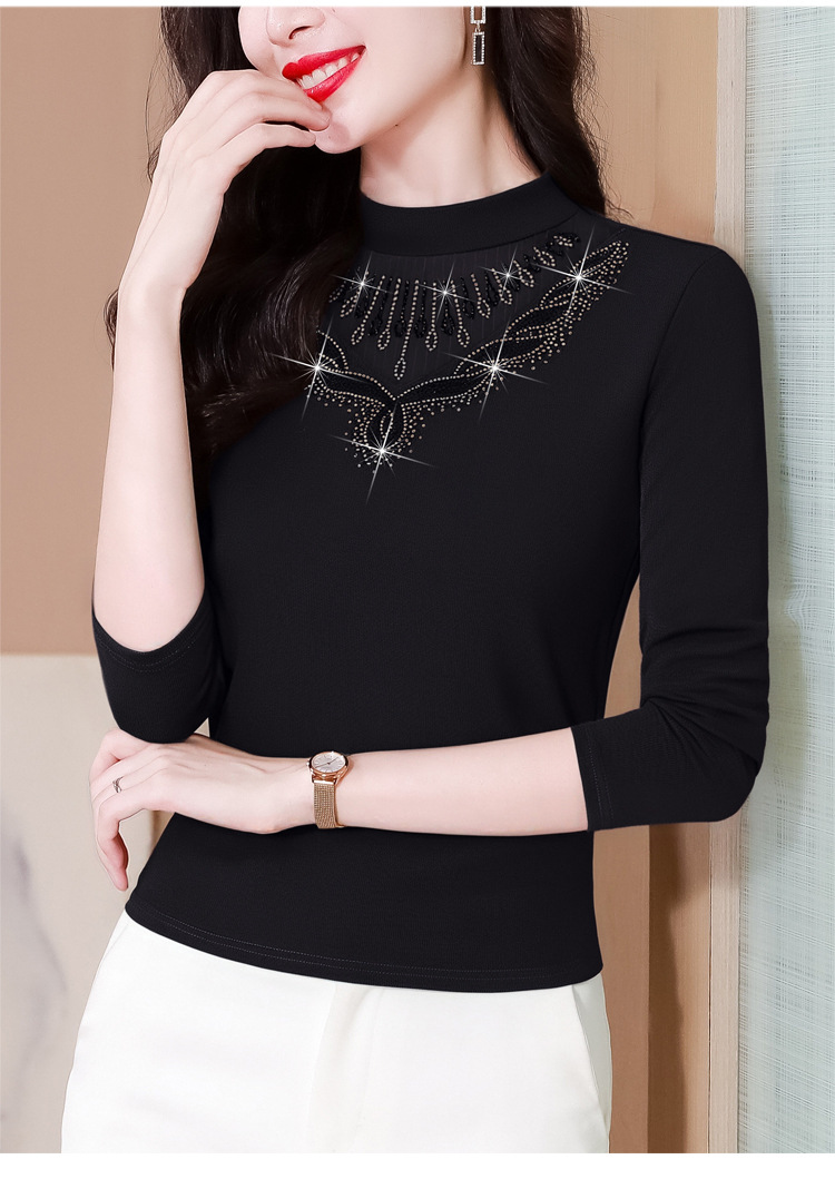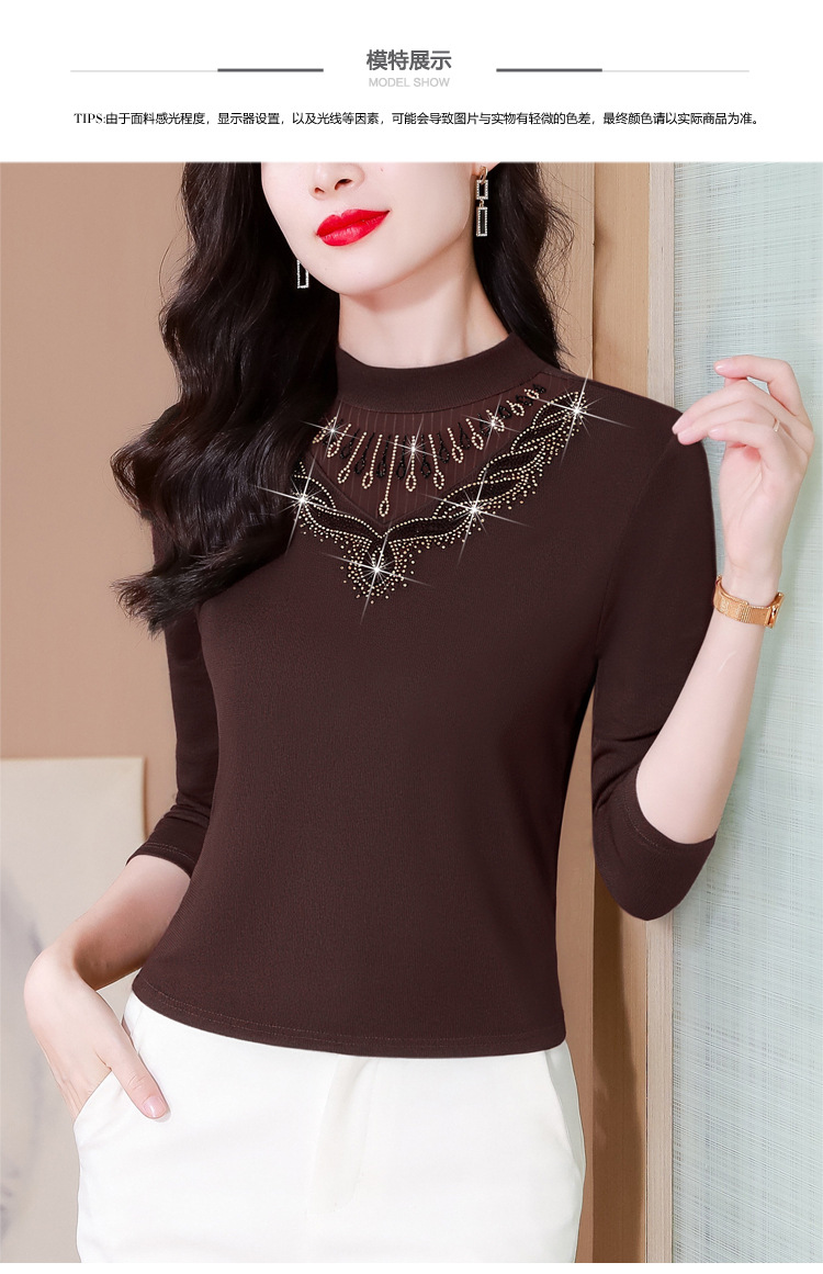 雀说蕾丝上衣女长袖新款大码女装半高领网纱内搭打底衫洋气衫AL2501