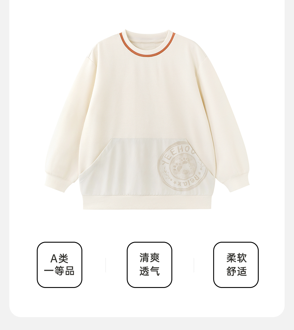 【商场同款】英氏儿童卫衣春夏季透气男童长袖华夫格卫衣2025新款