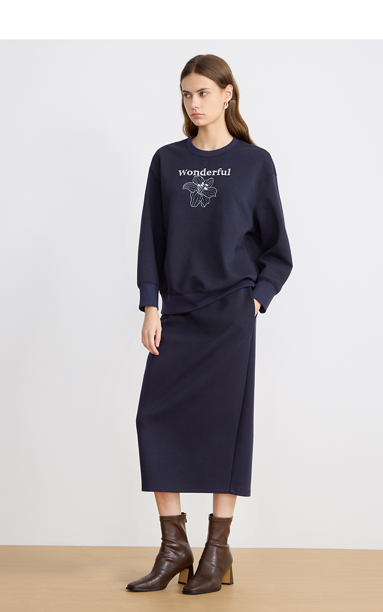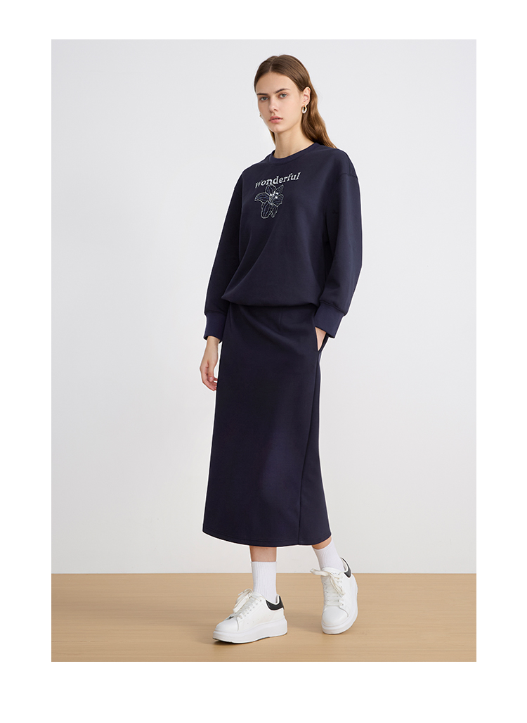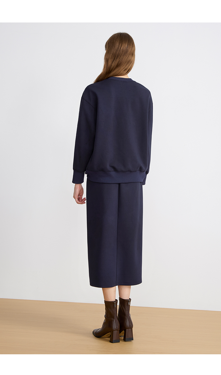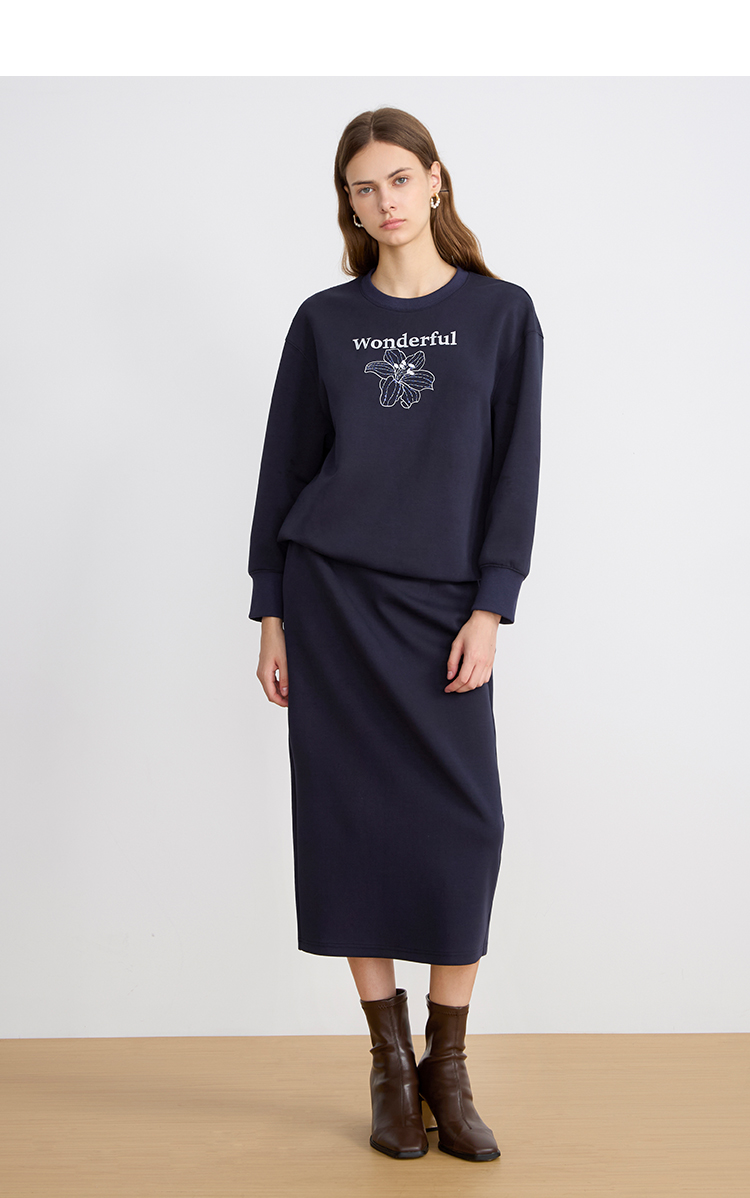 EITIE爱特爱女装秋冬新款慵懒风圆领纯色针织衫长款打底衫6001727