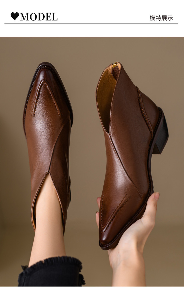 【预售5天】头层牛皮尖头粗跟短靴MLNS*F7102