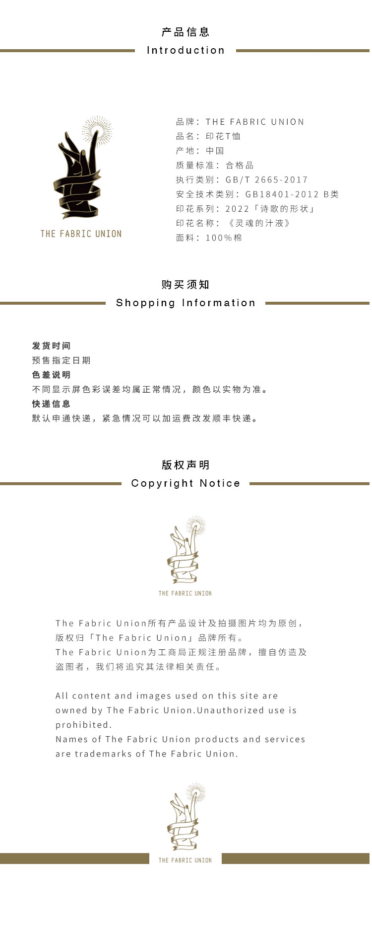 THE FABRIC UNION「诗歌的形状」系列 全棉印花T恤