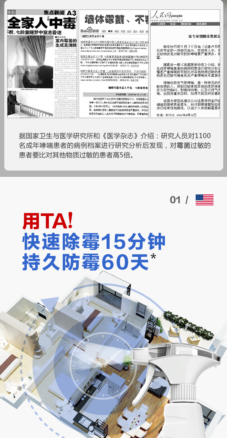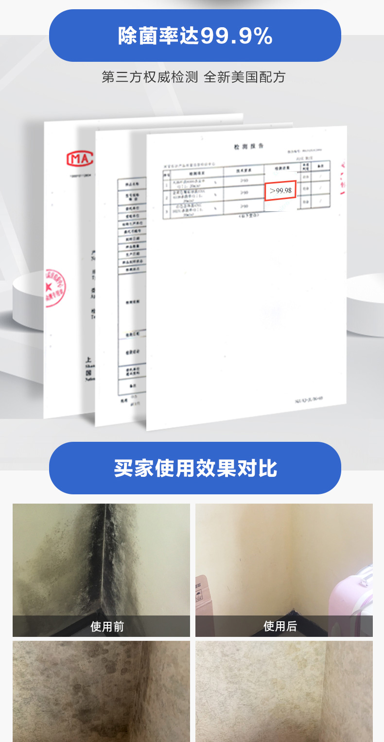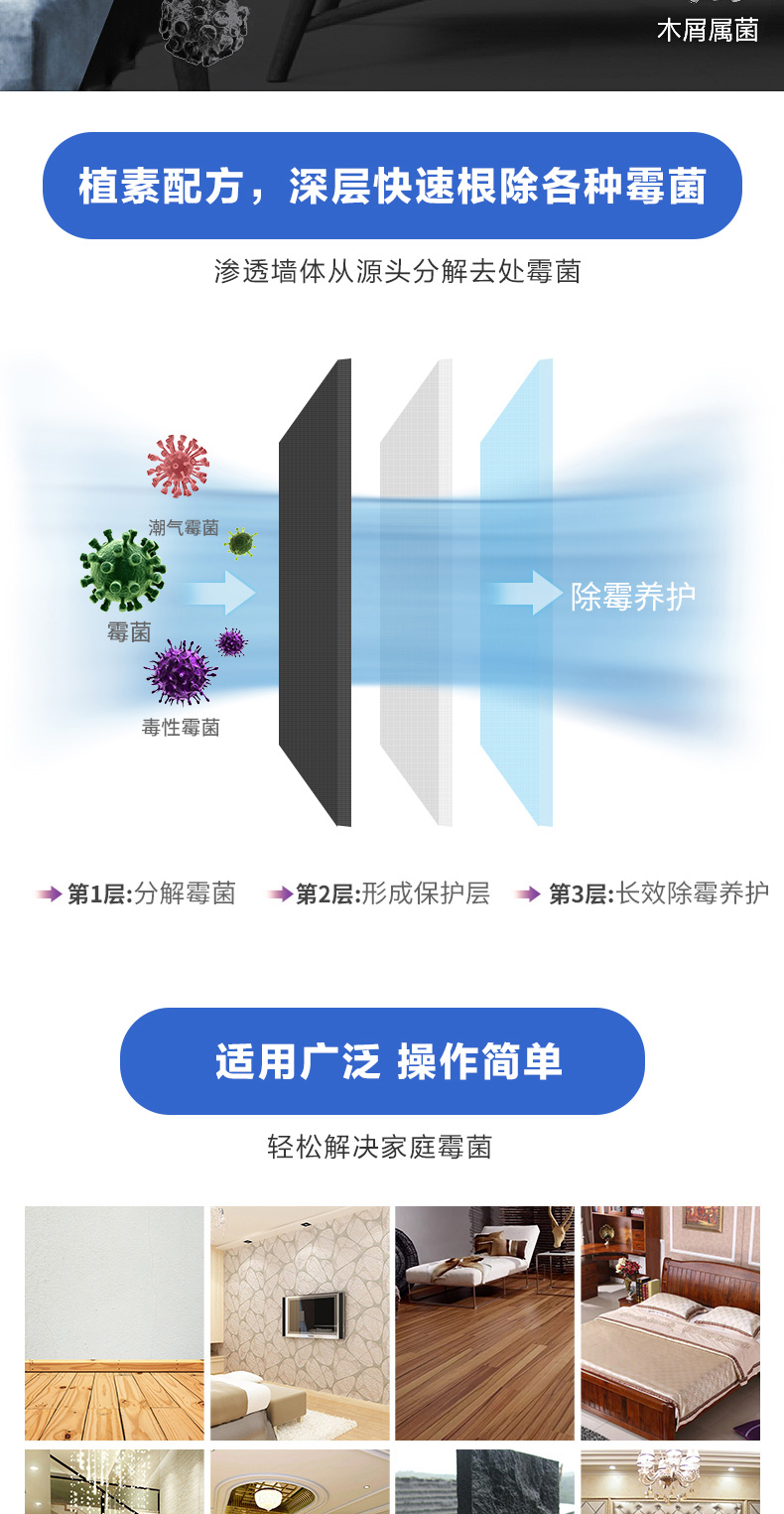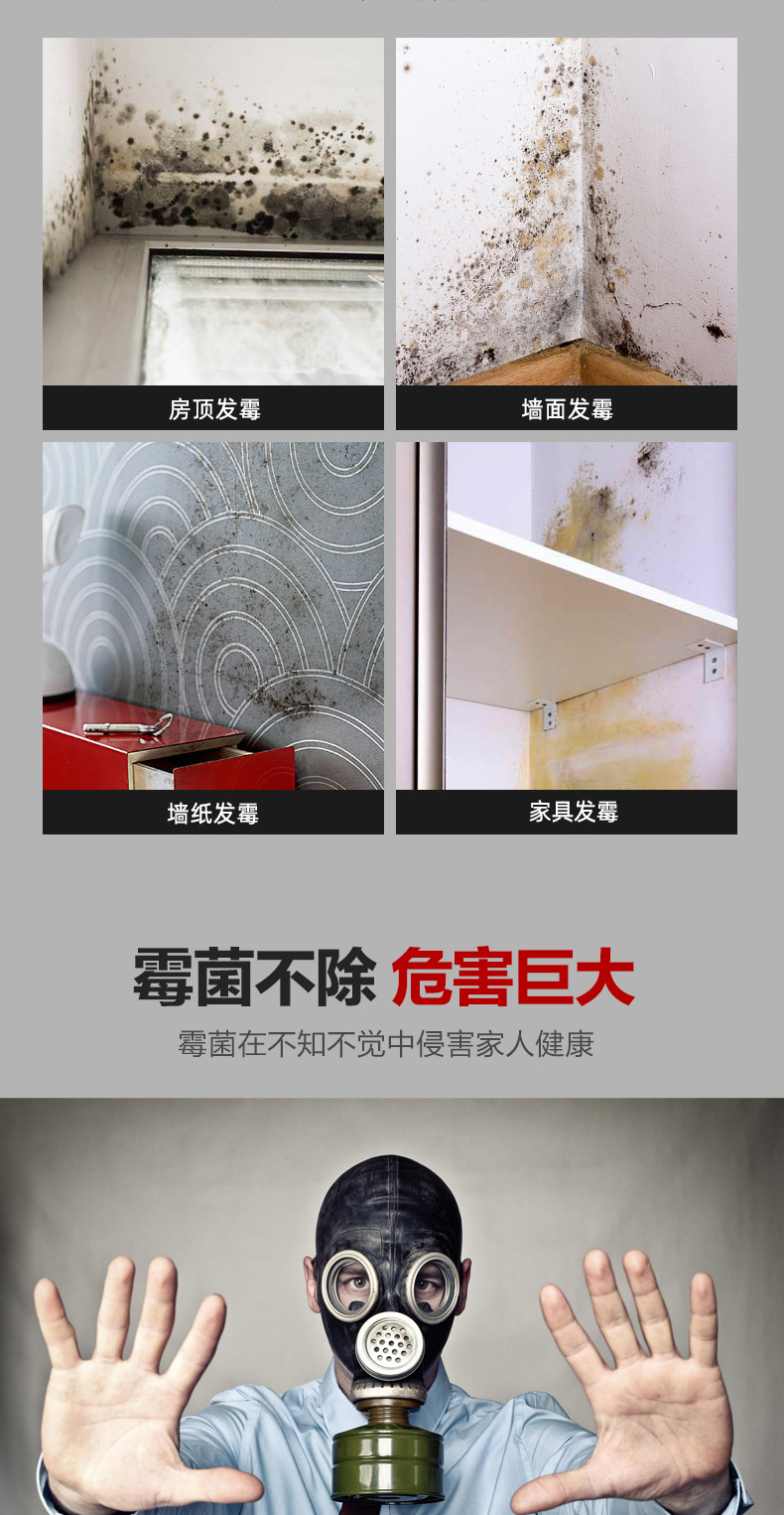 除霉剂:油漆面、壁纸、板材、玻璃胶、瓷砖