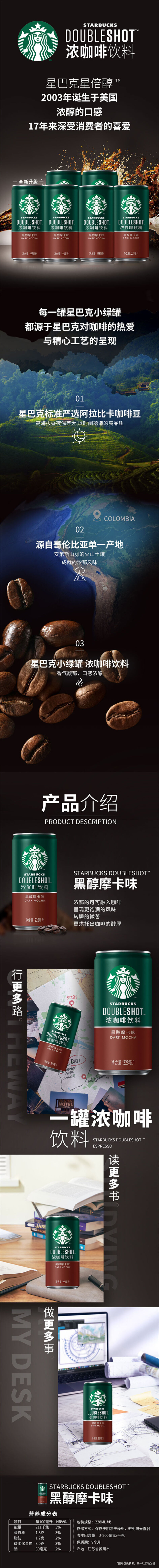 星巴克星倍醇黑醇摩卡味浓咖啡饮料228ML*6瓶