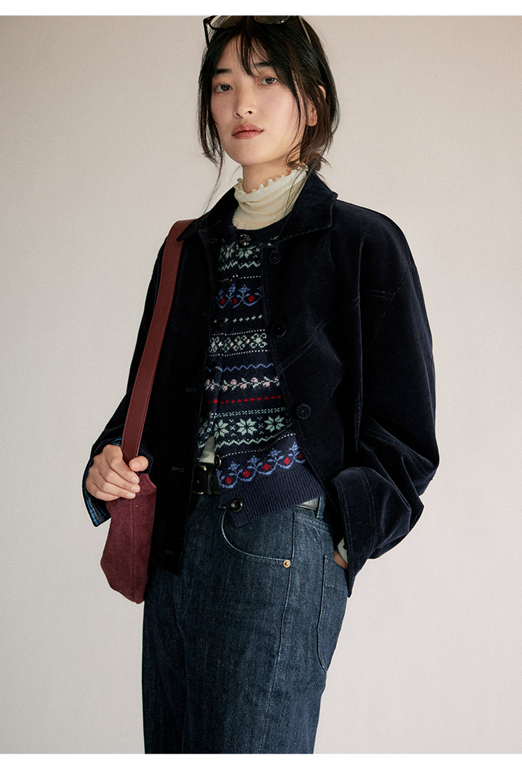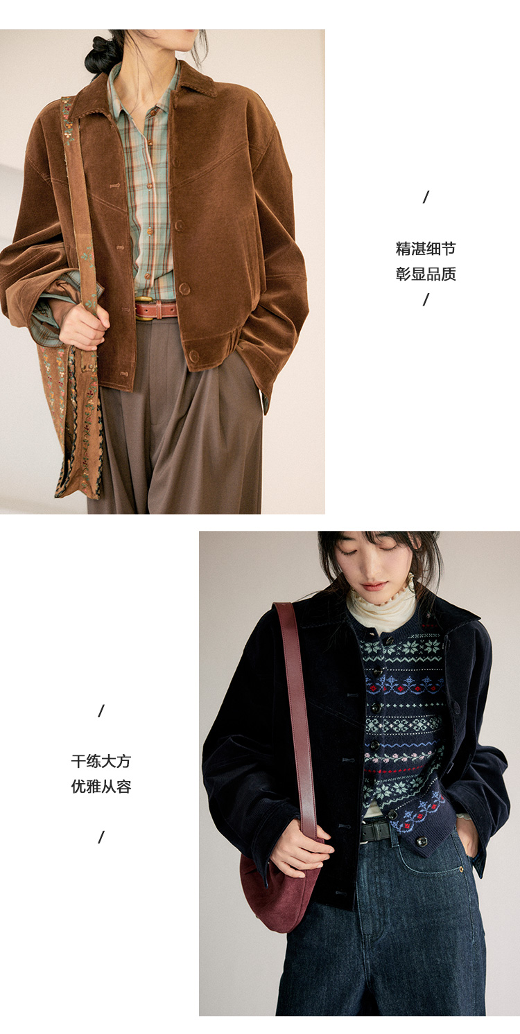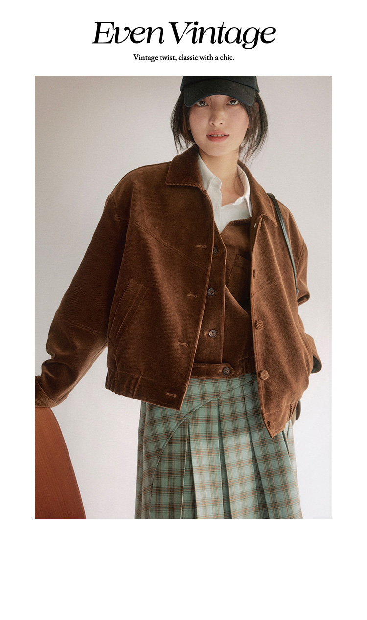 Even Vintage| 复古时髦 经典哈灵顿夹克版型灯芯绒加厚短款外套