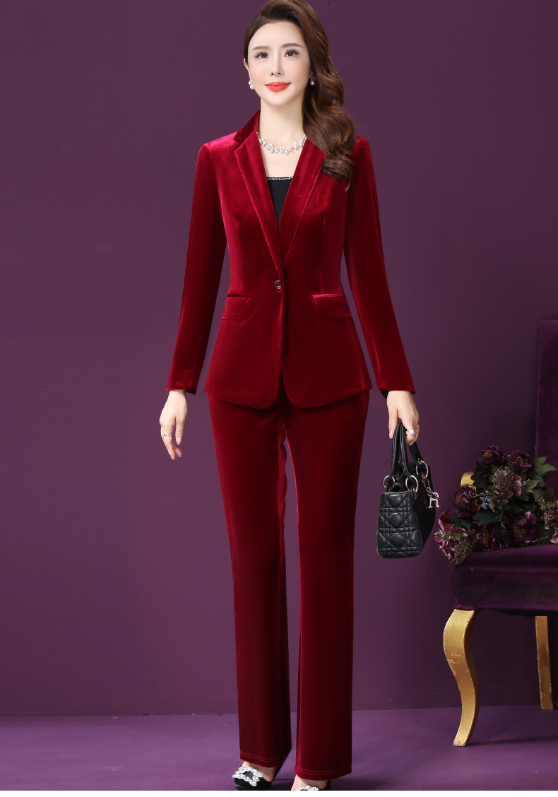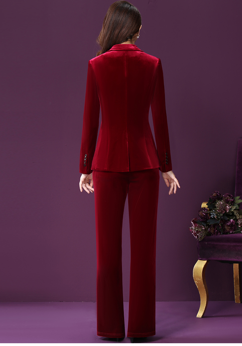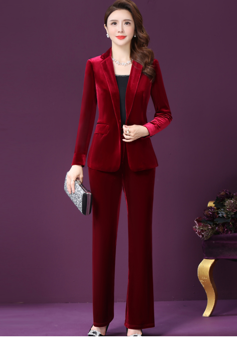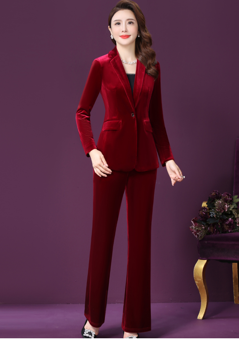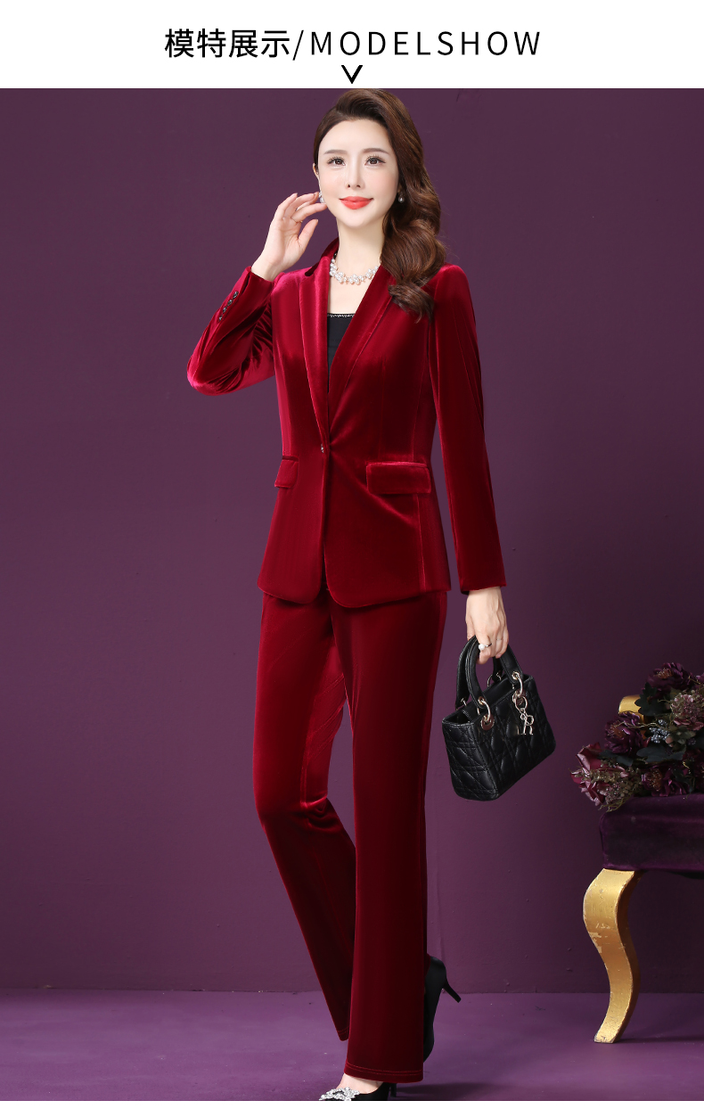 WXY-W-ANE-8537金丝绒西装两件套女时尚洋气百搭减龄套装
