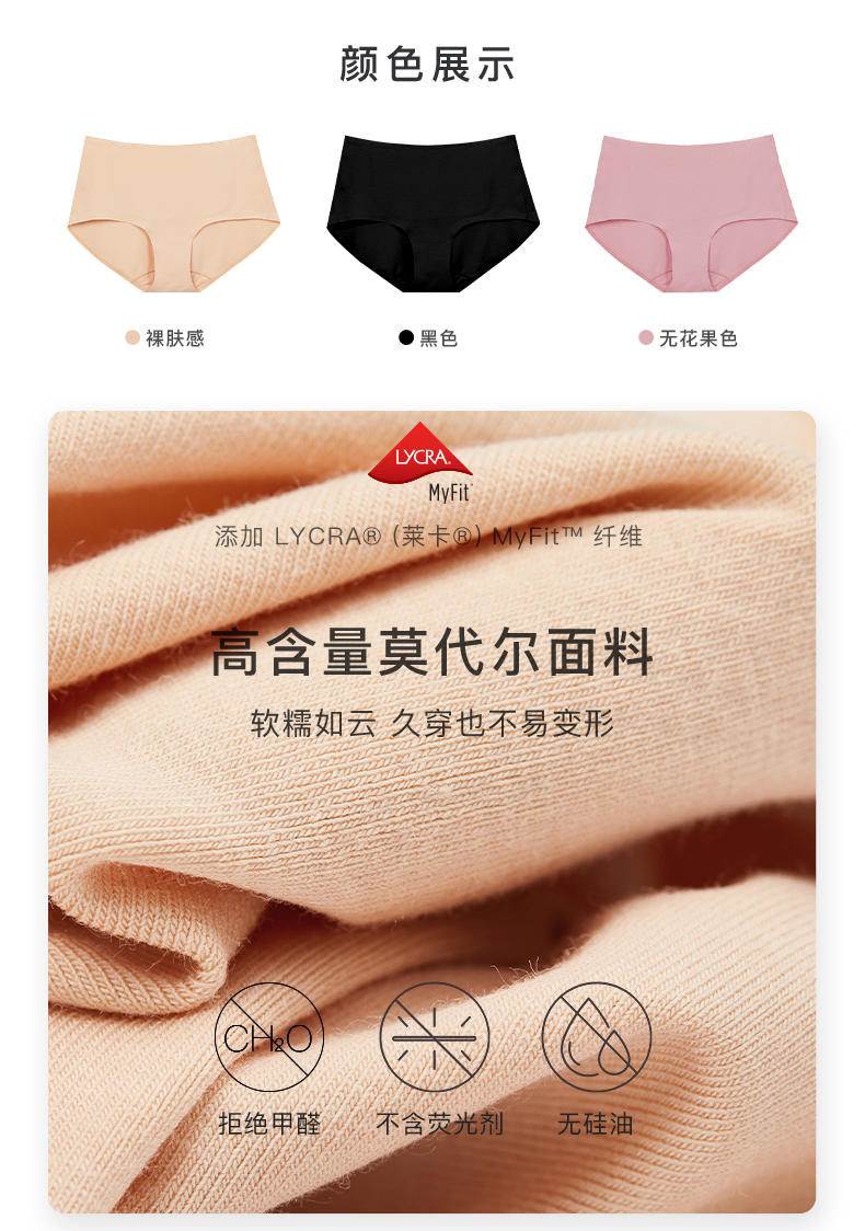 Ubras无痕高腰暖暖裤莫代尔无缝抗菌高腰内裤女舒适透气无痕内裤