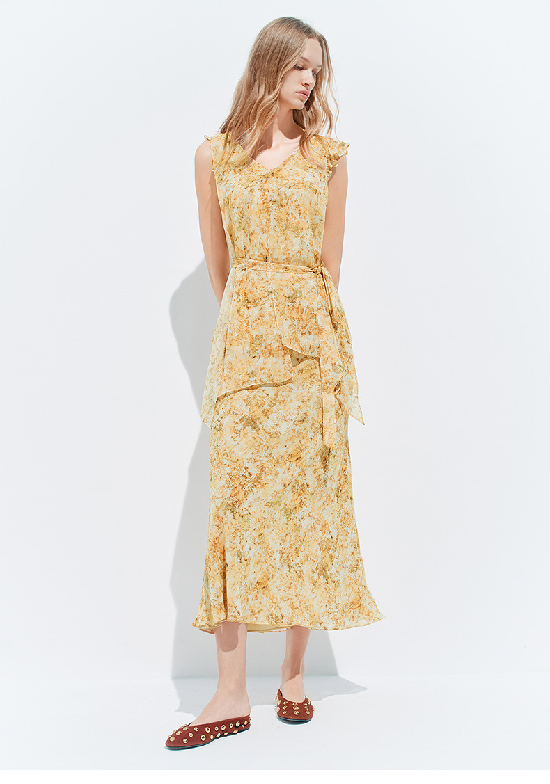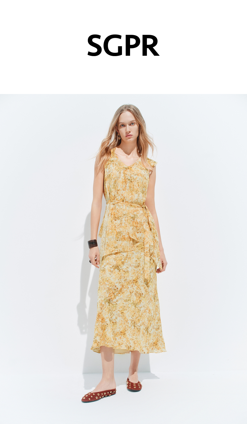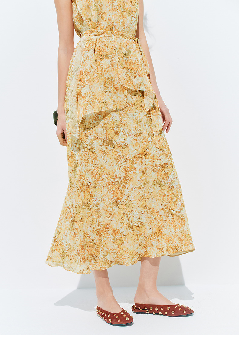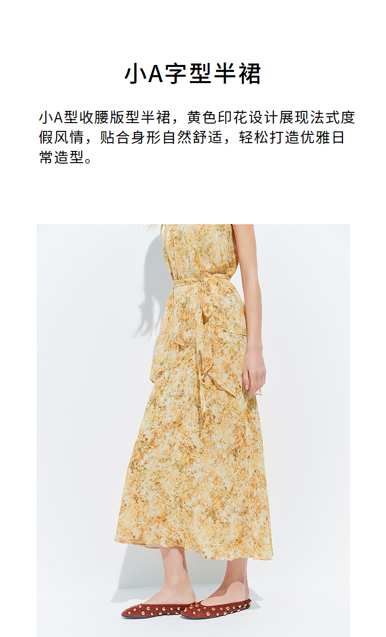 【SGPR】法式度假风印花半身裙2026年夏季新款收腰显瘦中长款半裙(货号:MU80SK035)