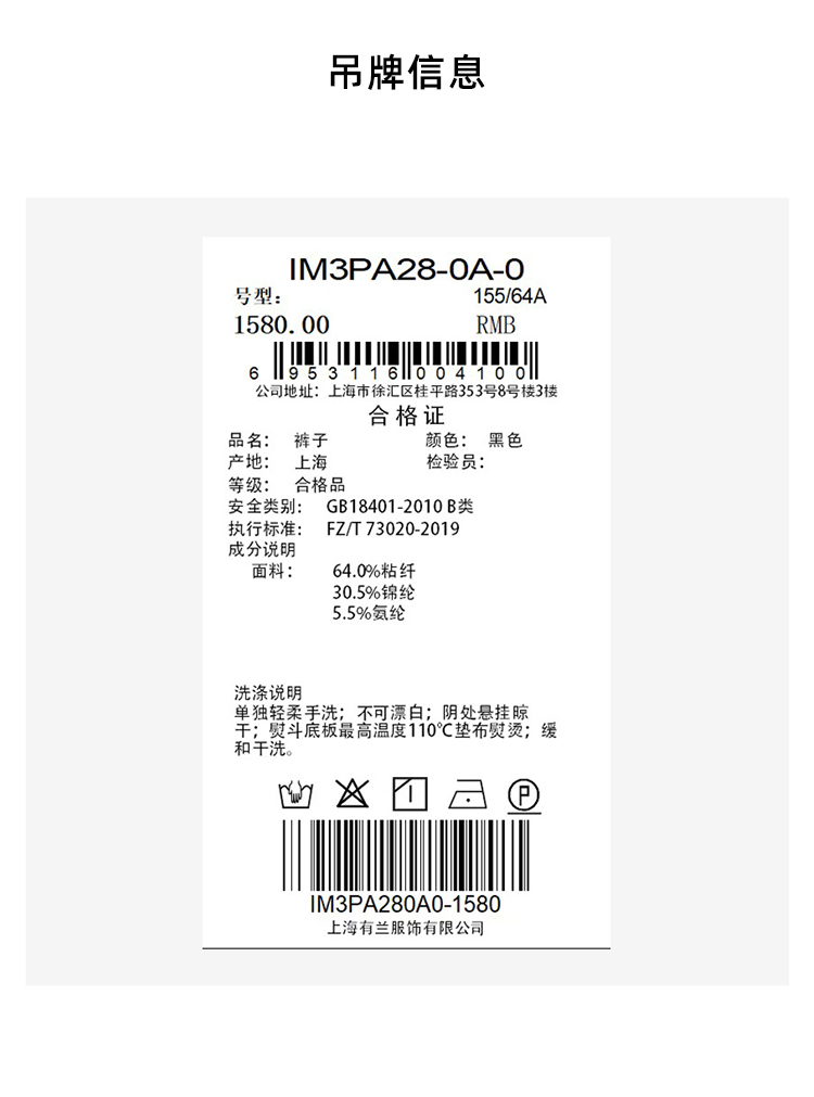 XS1S1有兰 黑色简约宽松休闲裤IM3PA28