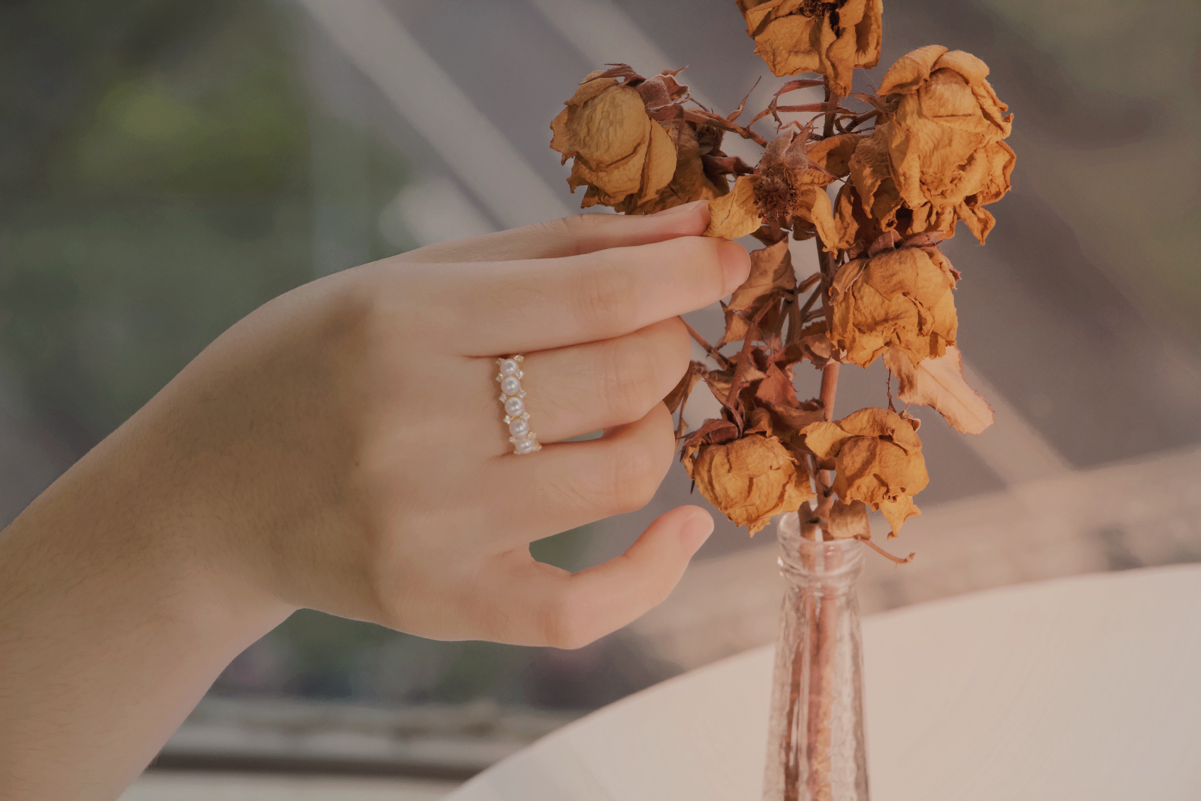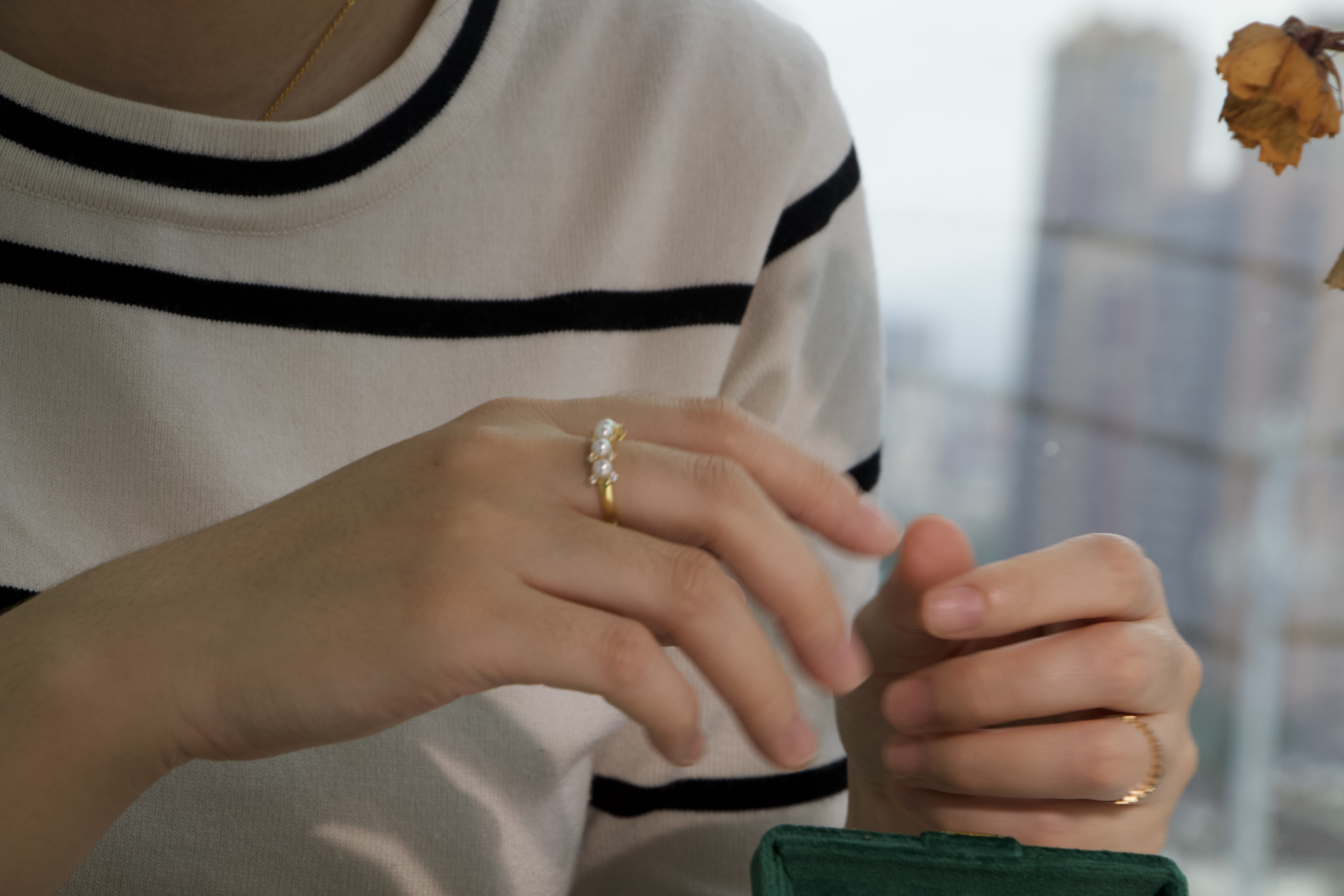 镶嵌了5颗3-4mm正圆高光小珍珠,虽然是简单的银质戒指,但是我们还是用心的挑选了精品小珍珠,光是看着就很满意。