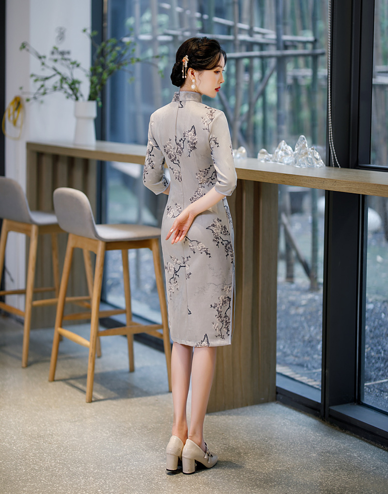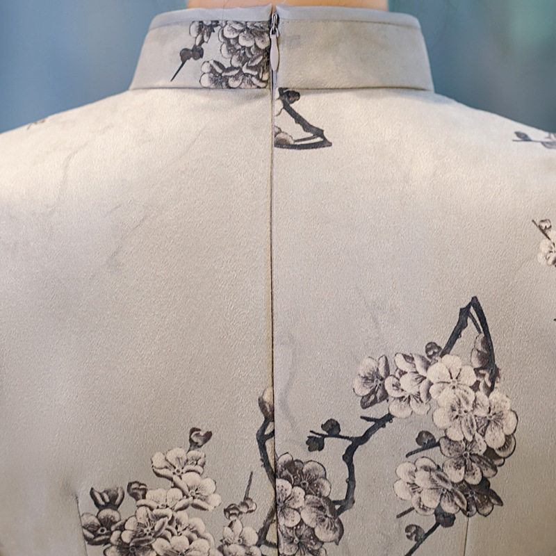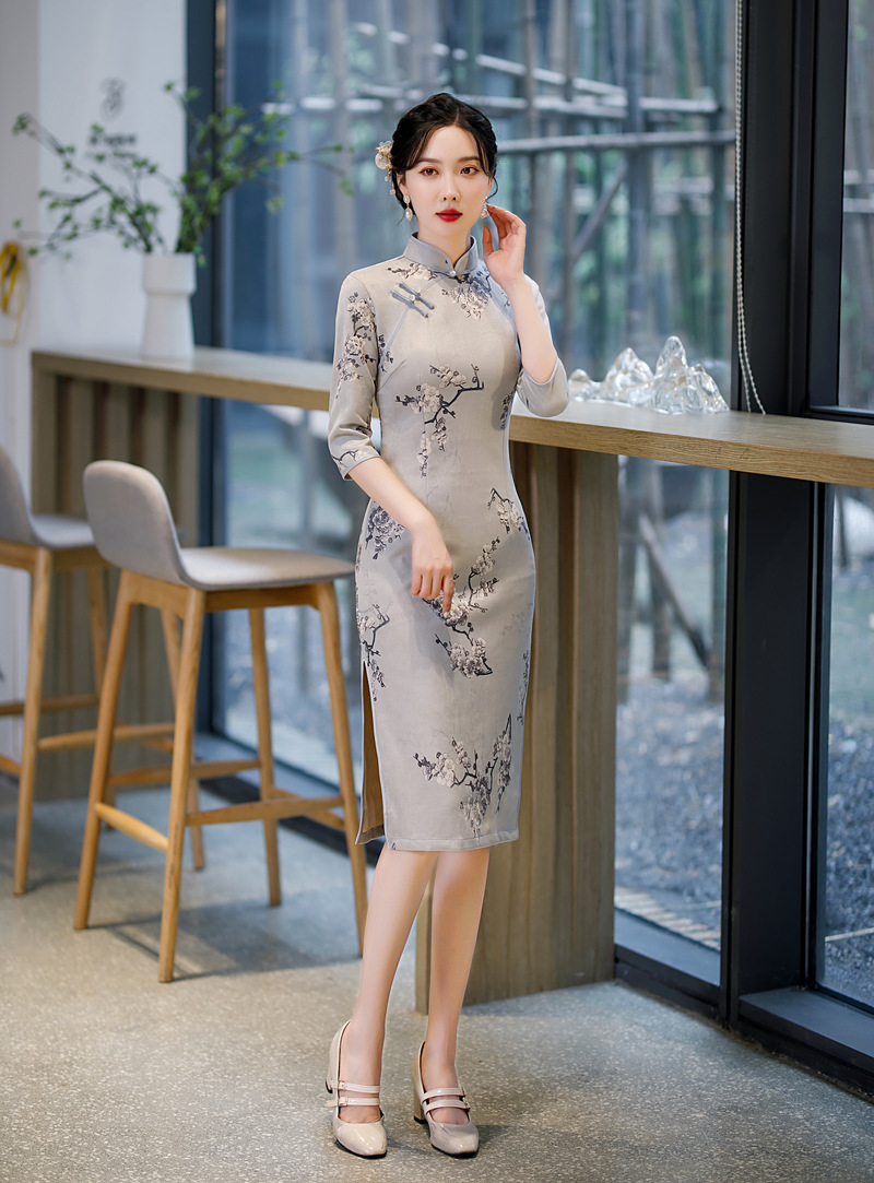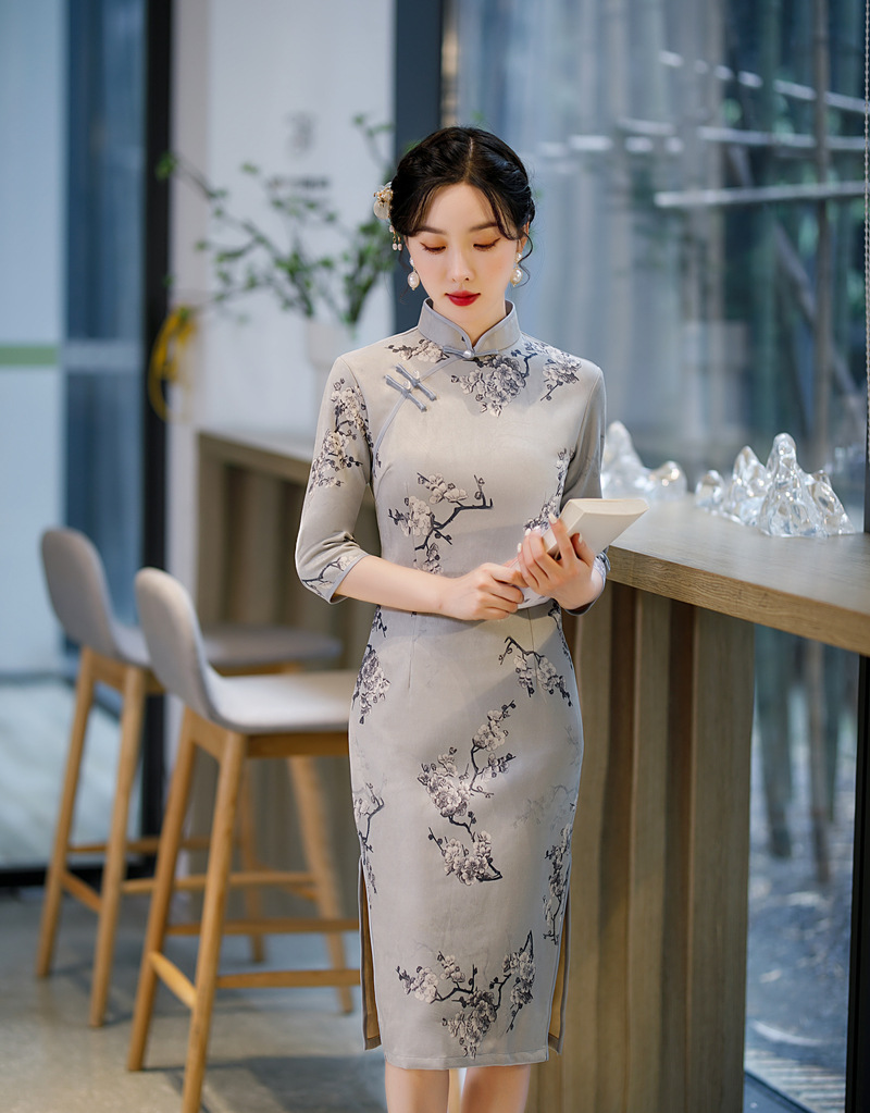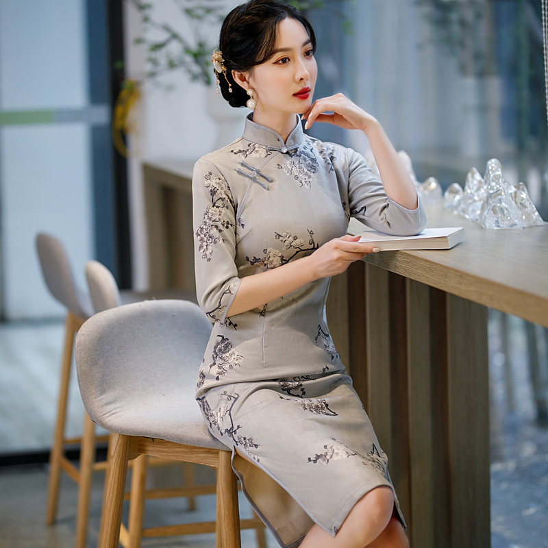 上海旗袍厂ZAYS-82227秋冬中长改良雪花绒年轻款旗袍日常少女时尚素颜立领旗袍