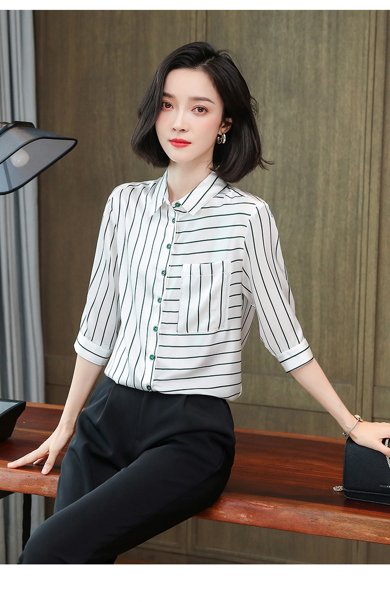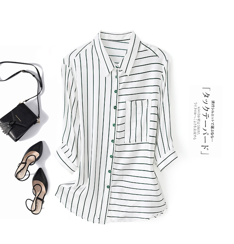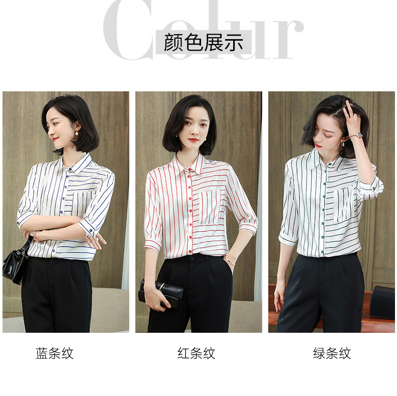 上海旗袍厂ASE-9003条纹气质时尚真丝衬衫